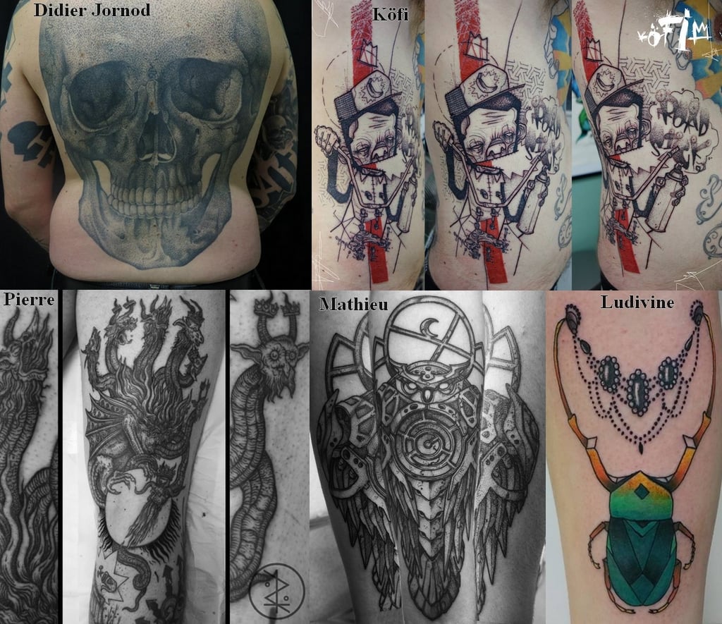 L’univers très sombre des tatoueurs du Baron samedi est adouci par les touches de couleurs de Köfi et Ludivine. (Photos : Baron samedi)