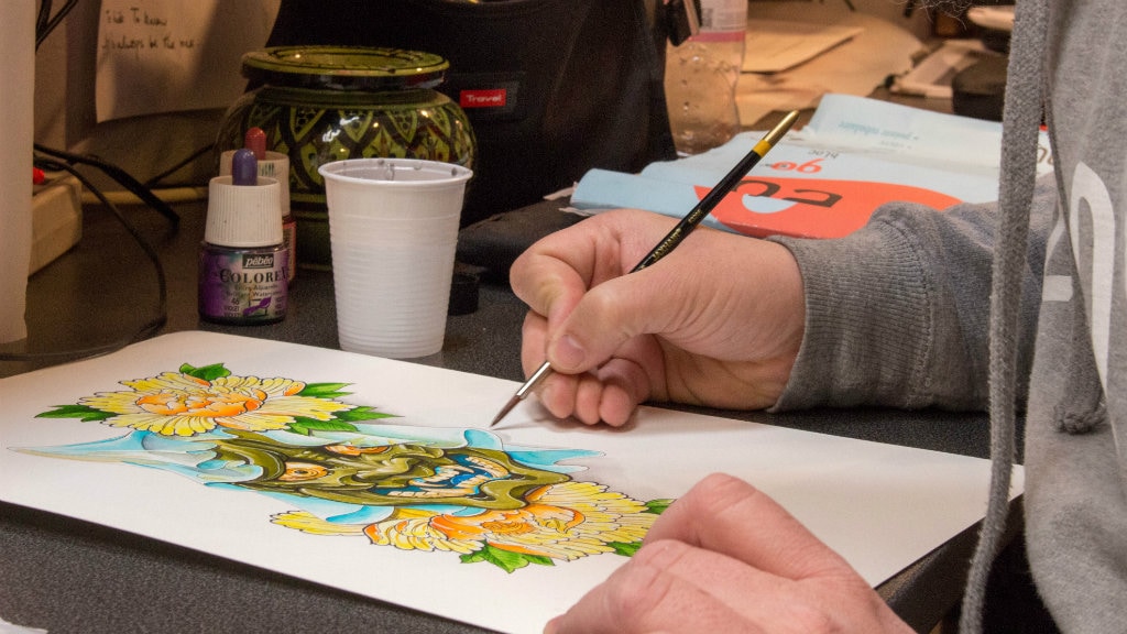 Uncle Ho peint un dessin qui servira de modèle pour un tatouage représentant un masque de Hannya, le fantôme d’une femme jalouse (Photo ACG / Rue89 Strasbourg)