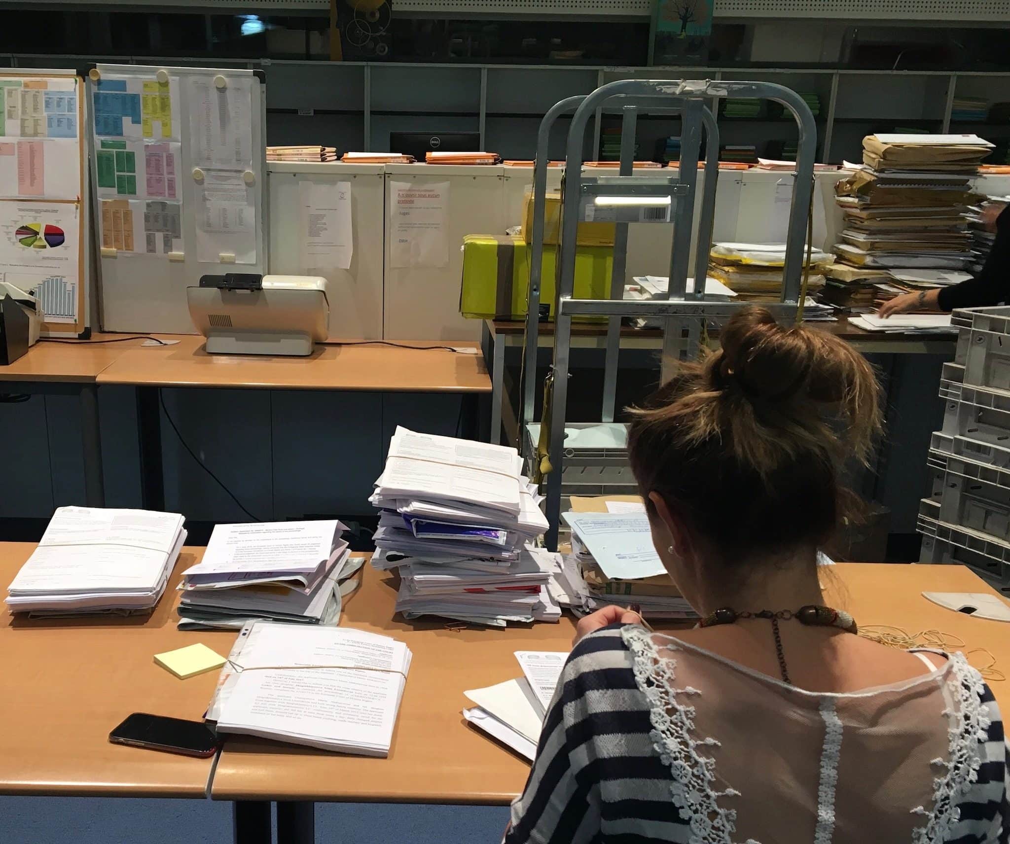 Finlandais, français, turques, géorgiens et encore bien d’autres nationalités travaillent côte à côte. Ils sont une dizaine à lire environ 70 courriers par demi-journée, un chiffre qui varie en fonction du nombre de lettres reçues et de la langue dans laquelle elles arrivent… Brigitte Lotz, responsable du bureau central et des archives de la Cour, explique :
