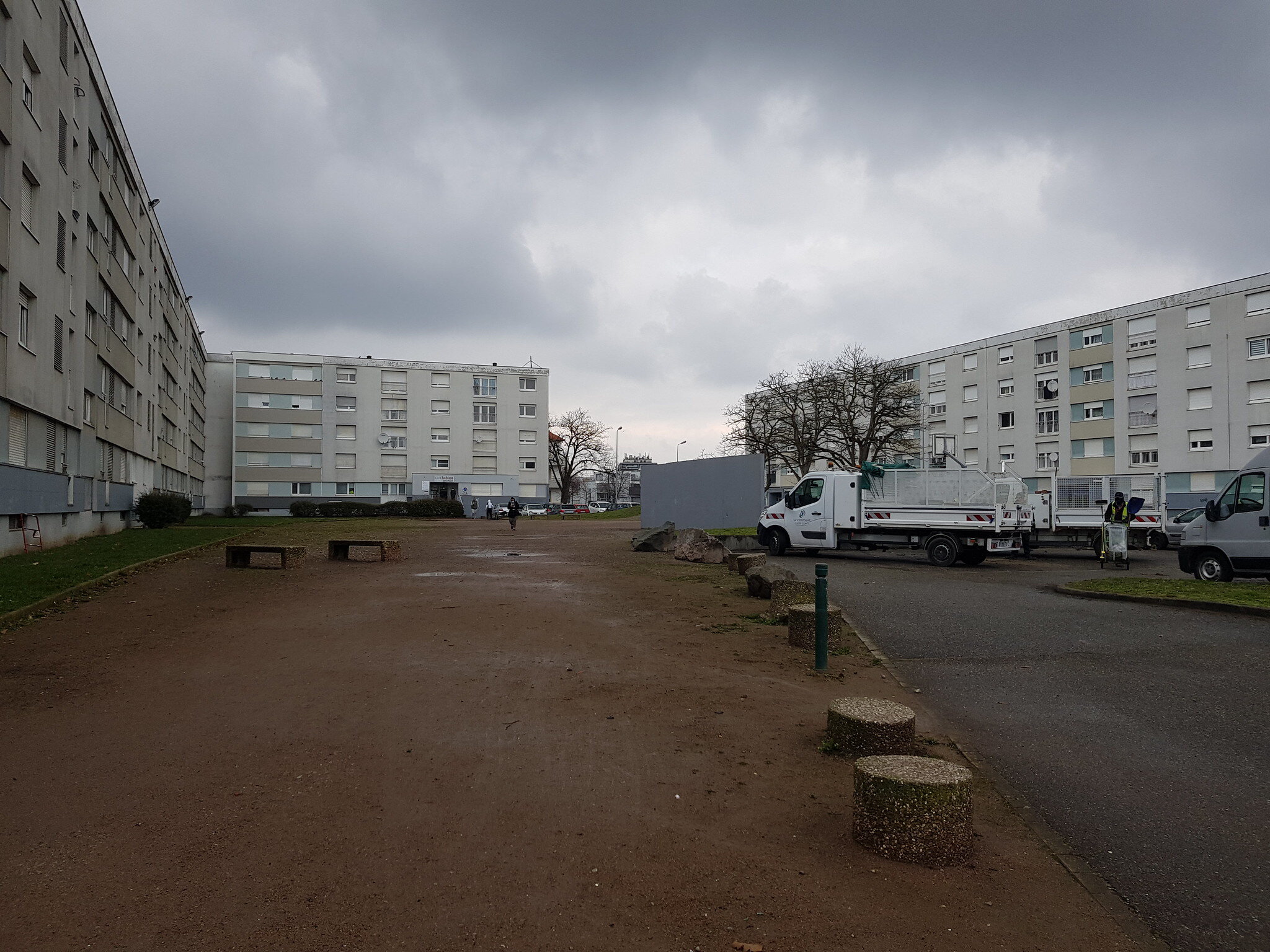 Patricia a 58 ans, dont 37 passés dans un petit appartement du 1er étage de la « demi-lune », ce bâtiment emblématique du quartier. Géré pendant des années par CUS-Habitat (devenue Ophéa), il est sous la tutelle de la Somco depuis 2012, bailleur social historique mulhousien. Patricia se rappelle bien du moment où les bacs bleus et jaunes ont été installés au pied de son immeuble. « Mais il n’y a pas de respect ici, les gens jettent n’importe quoi, n’importe où. Ça ne sert à rien. »
