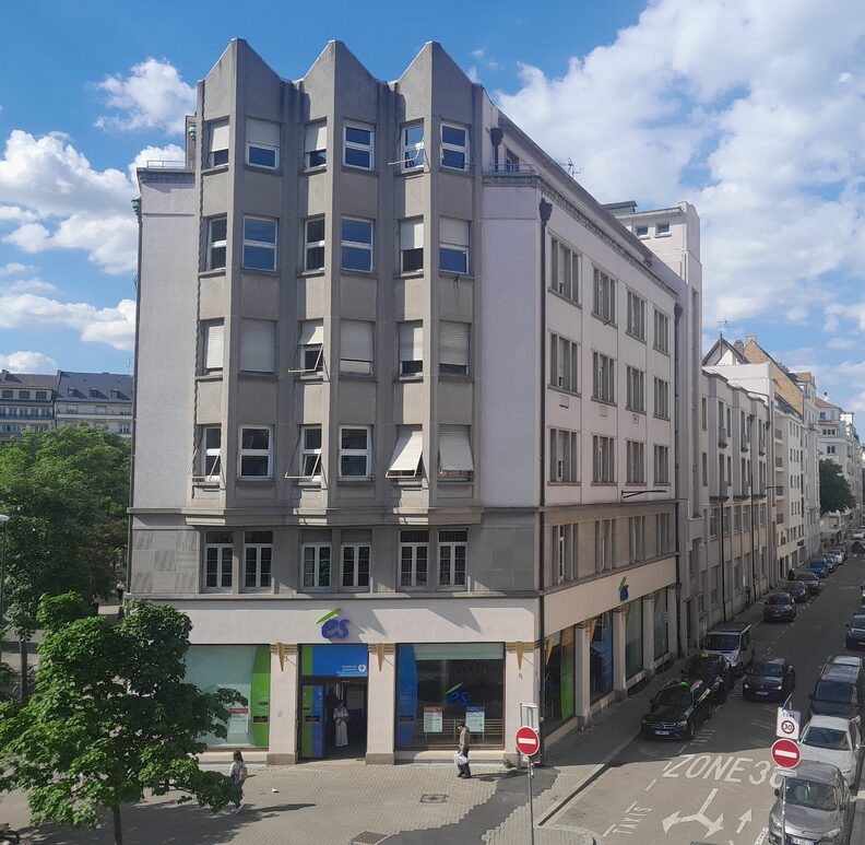 « Si la géométrisation et la symétrie sont de règle, le vocabulaire architectural Art déco peut adopter des formes variées, des façades nues, à pans plissés, à rotondes circulaires, du style paquebot à des formes presque radicales », décrit Robert Dulau dans son ouvrage Strasbourg 1900-1930.