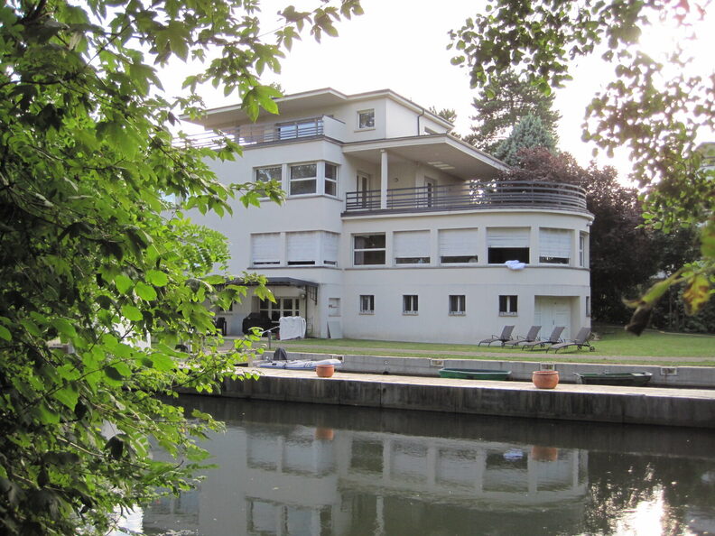 Un des plus beaux exemples de ce style est la Villa Schranz. Réalisée par Jules-Pierre Haas en 1935, elle se trouve dans le quartier du Rhin Tortu, au 9 rue de Sarcelles. Les terrasses étagées sur deux niveaux rappellent les ponts d’un bateau et les lignes du corps de garde renvoient aux bastingages. La métaphore marine a été poussée à son paroxysme puisque la villa incluait à l’origine un petit port de plaisance privé.