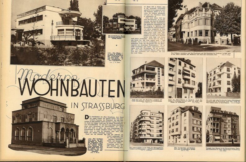 « La production Strasbourgeoise témoigne ainsi de la diversité des expressions Art déco », observe Robert Dulau dans son ouvrage. En tous les cas, les formes s’épurent, les architectes multiplient les ouvertures pour faire entrer la lumière dans les habitations (le bow-window est un motif récurrent) et la mode est aux toits plats. C’est d’ailleurs de cette époque que date la première maison à toit-terrasse de Strasbourg : la villa Berst-Knecht.