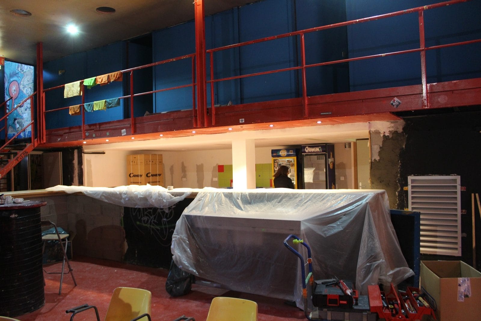 Les grands travaux de la salle du Molodoï, voisine de la Laiterie dans le quartier gare de Strasbourg sont bientôt terminés. Du moins le gros œuvre, la toiture et le sol. Quelques finitions vont s’étaler jusqu’à mai 2018, autour du bar agrandi, la cuisine, des toilettes et de quelques autres mises au normes (accès personnes handicapées, compteur électrique).