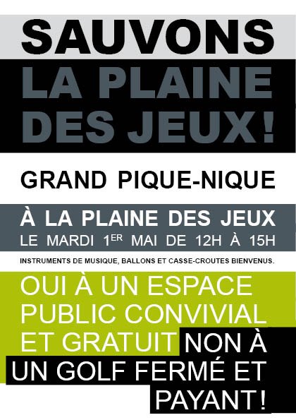 Pique-nique contre un golf à Hautepierre, Plaine des jeux à Hautepierre, Strasbourg, mardi 1er mai à partir de midi. Un événement a été créé sur Facebook.