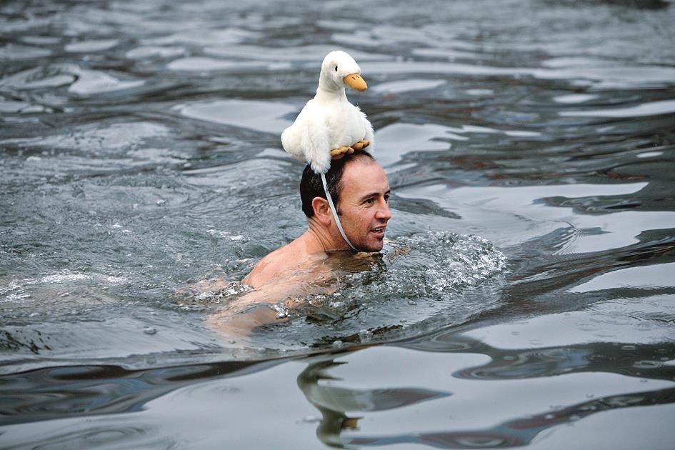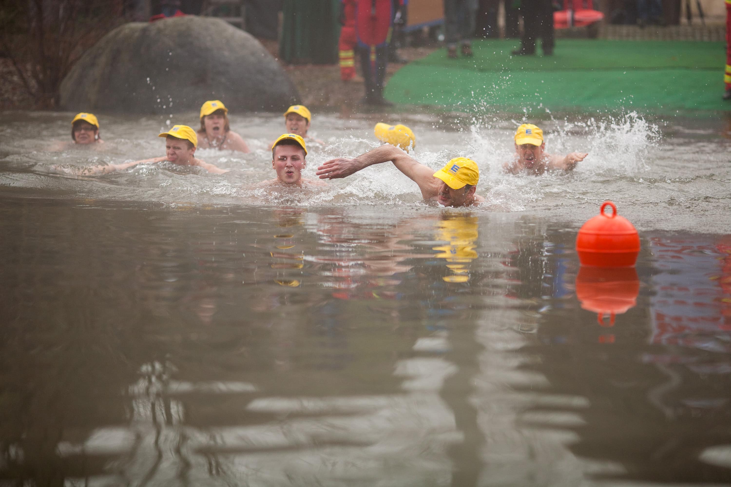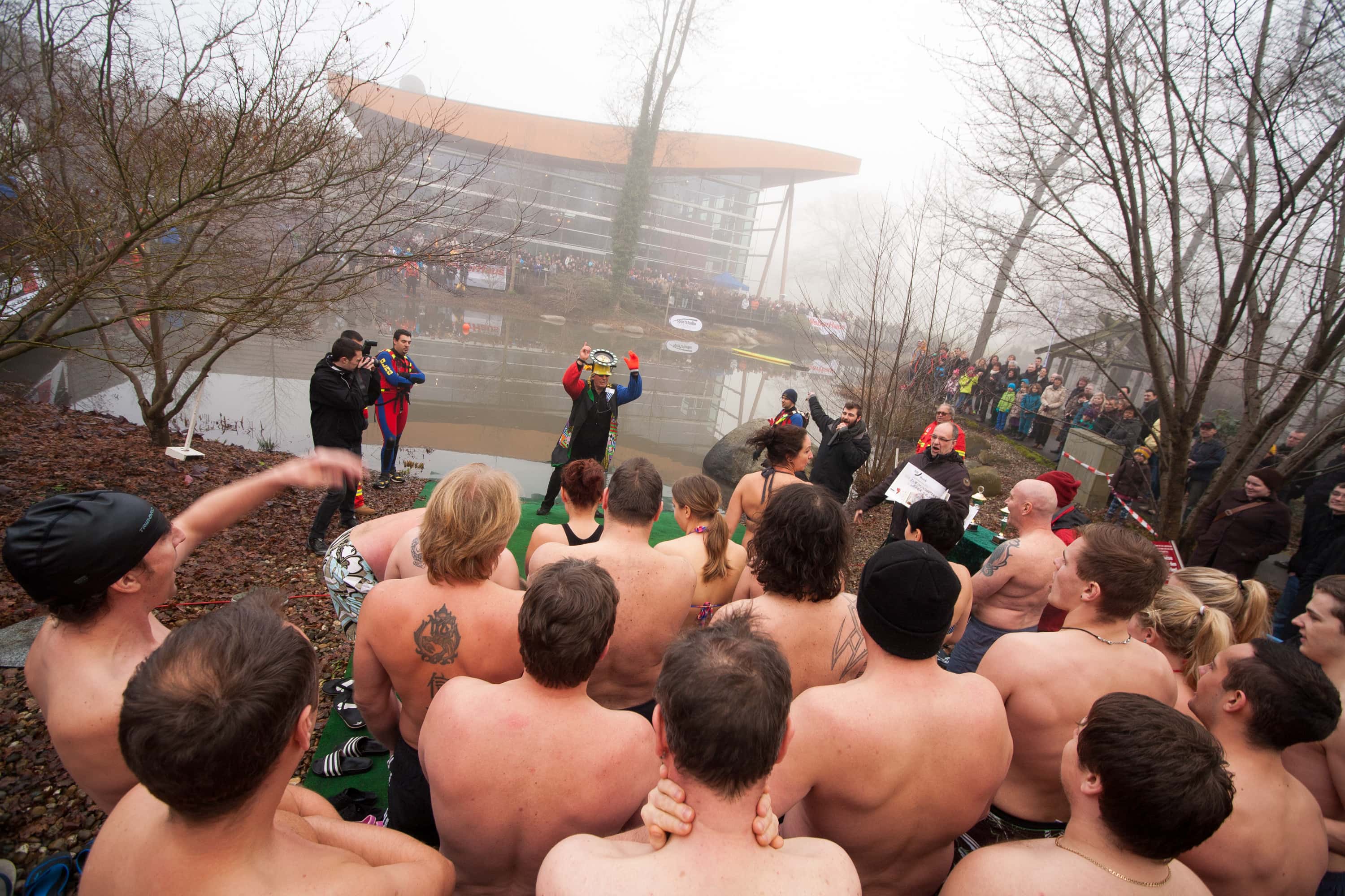 Dimanche 11 janvier, baignade dans le lac du parc World of Living situé sur le site du constructeur Weberhaus, à la sortie de Rheinau (Allemagne). Le grand plongeon est prévu à 14 h 30.