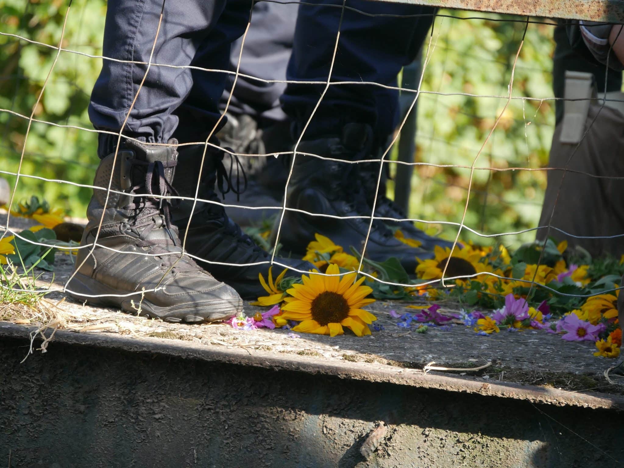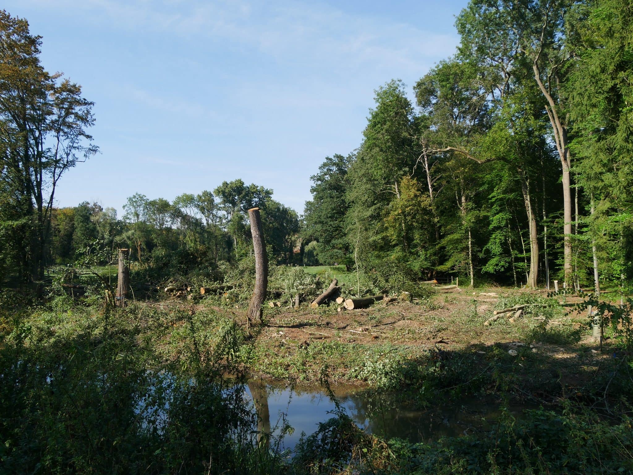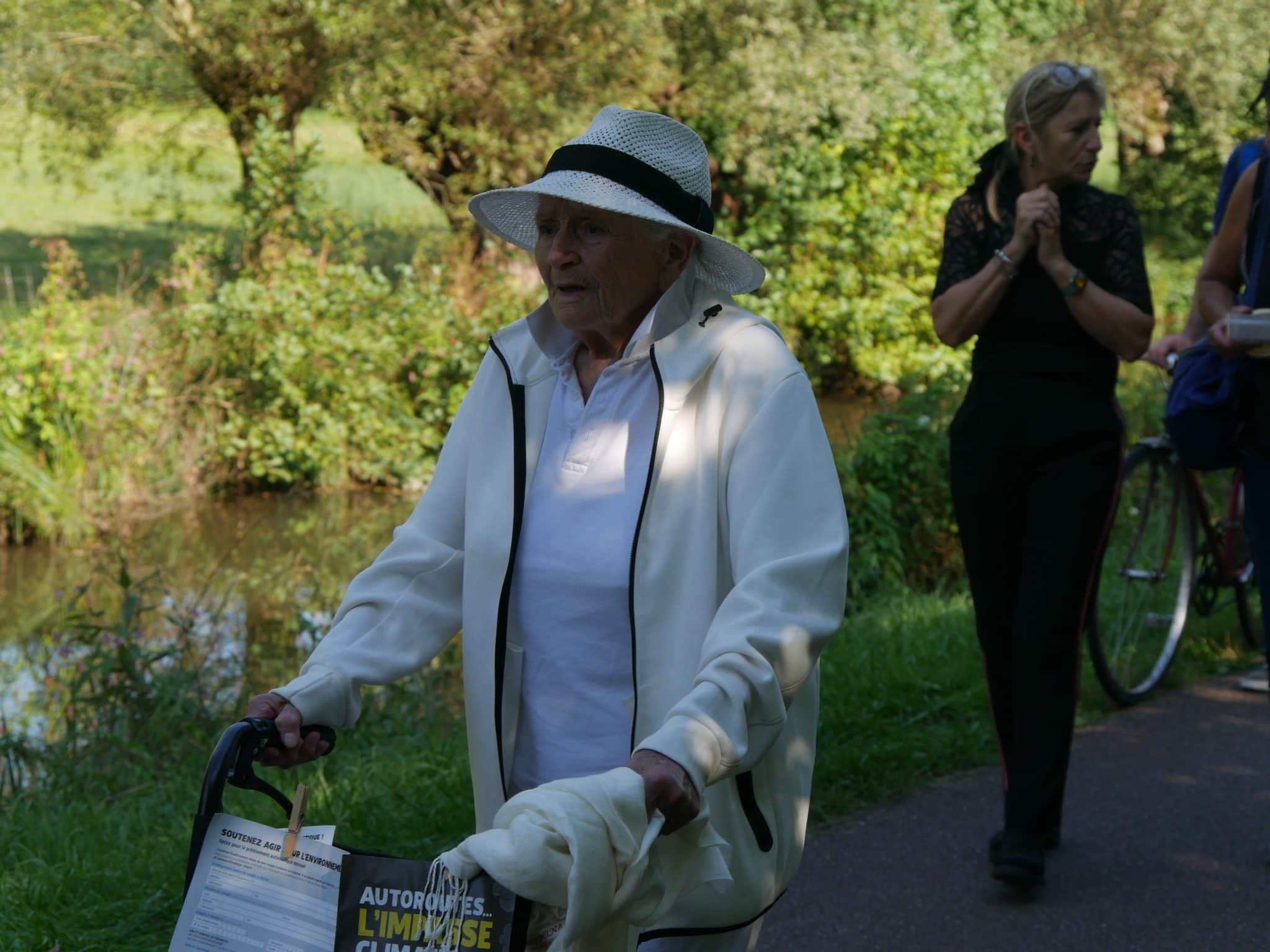Les manifestants ont quitté le village peu après 15h. Le long du canal de la Bruche, ils ont marché vers le site de l’ancienne ZAD. Devant les troncs d’arbres au sol, certains filment, d’autres fustigent un « massacre ». Laurent, 68 ans, est assis sur le côté de la piste cyclable. Il s’est rendu à plusieurs reprises sur le site occupé pour aider les zadistes. Le schilikois dénonce le projet autoroutier :