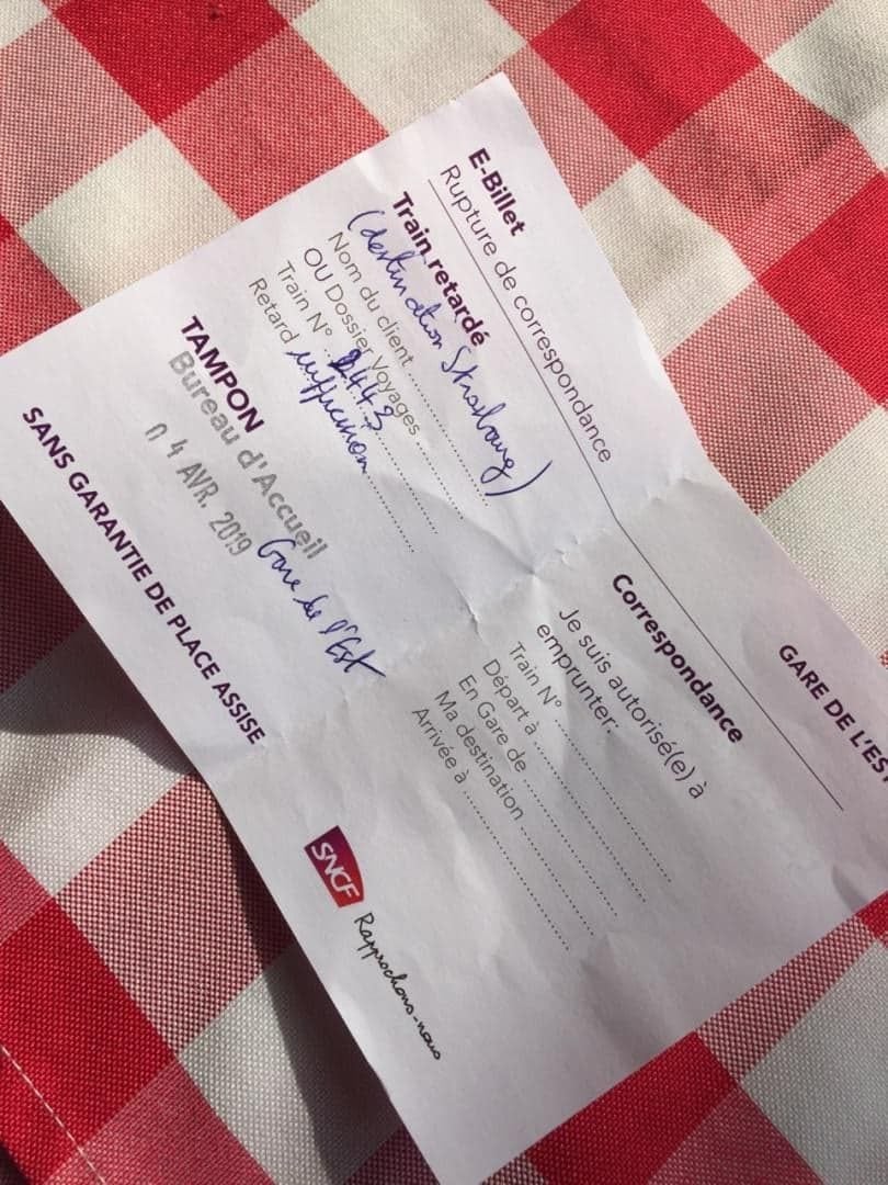 Le fameux papier qui permet de prendre un autre train demain matin… (Photo Noémie Rousseau)