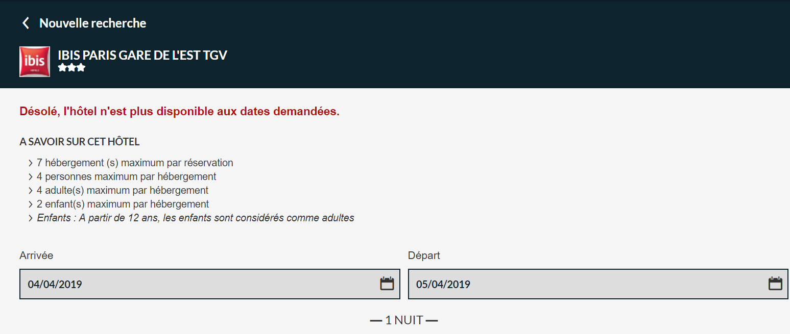 Le trafic est interrompu à Paris-Est depuis 13h40. Un dérangement d’installations perturbe le trafic au départ et à l’arrivée de cette gare. Nous vous invitons à reporter votre voyage.