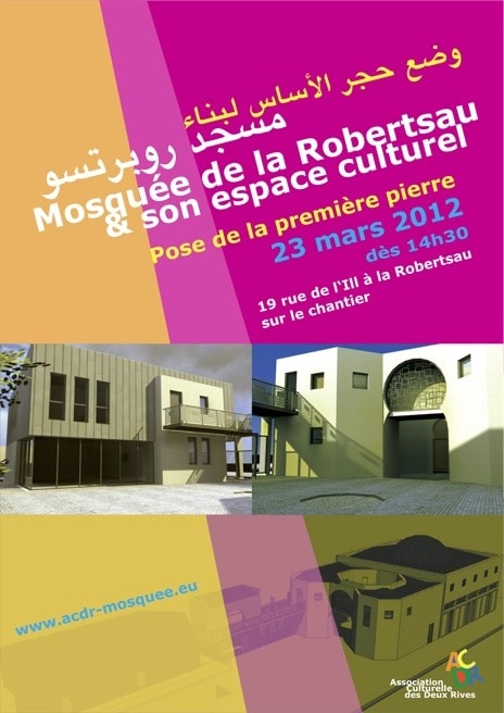 Chaïb Choukri, Président de l’association culturelle des deux rives, invitent tous les strasbourgeois à la cérémonie de la pose de la première pierre de la mosquée et de l’espace culturel de la Robertsau – vendredi 23 mars 2012 à 15 heures – sur le chantier 19 rue de l’Ill (à hauteur des commerces de la Cité de l’Ill)