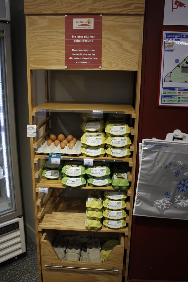 Au Auchan des Halles, une feuille est accrochée sur le côté de l’étagère des œufs plein air mais elle est cachée par des articles. Jean-Luc Langevin, directeur du magasin Biocoop, dit ne pas être pas au courant qu’une information aux consommateurs est censée être réalisée. Le responsable de Naturalia assure n’avoir reçu aucune consigne de la part du service marketing. La direction de l’enseigne affirme que « l’information est mal descendue en région Grand Est ». Suite à la sollicitation de Rue89 Strasbourg, le distributeur va « procéder à l’ajustement et à la mise en conformité ». Contactés, les groupes Auchan, Carrefour et Biocoop n’ont pas répondu aux questions de Rue89 Strasbourg.