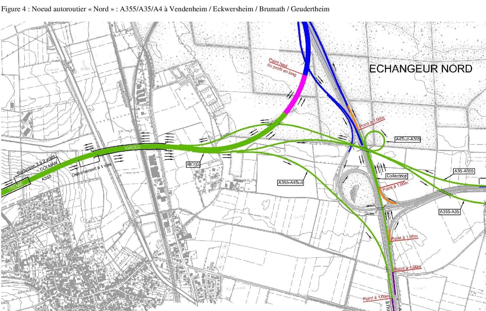 Cette reconfiguration d’ampleur de l’échangeur nord vise à conduire les automobilistes « naturellement » sur le GCO (ou A355) payant et d’aménager d’autres bretelles pour les automobilistes qui souhaitent accéder à la capitale alsacienne par le nord ou qui rejoignent l’A35, mais sans indiquer Strasbourg sur les panneaux.