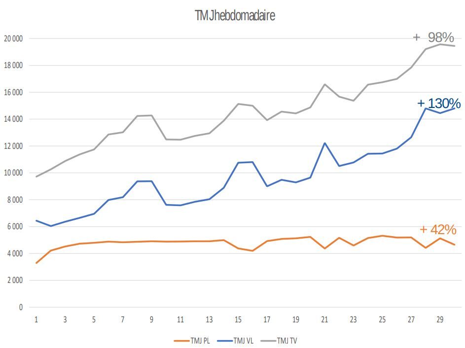 Arcos a confirmé que l’autoroute payante était majoritairement utilisée par les véhicules de passage, ainsi les chiffres des véhicules légers augmentent sensiblement lors des vacances scolaires par exemple (voir le graphique ci-dessous).