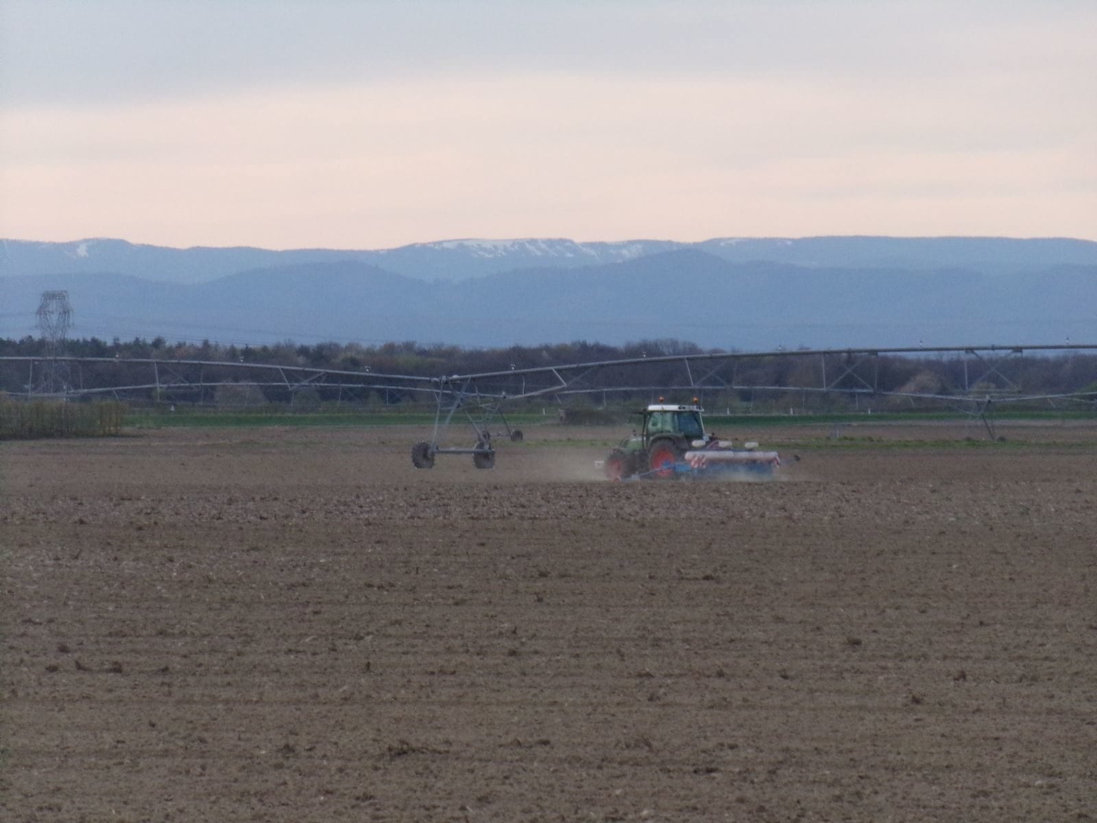 Depuis les routes de campagnes que nous arpentons pour nous rendre aux points de relevés, nous apercevons de nombreux tracteurs à six roues qui commencent les semences. Les surfaces à cultiver sont si grandes que ces véhicules imposants sont indispensables. L’un d’entre eux répand un liquide rouge qui est contenu dans une rangée de bidons accrochés à l’arrière du tracteur.