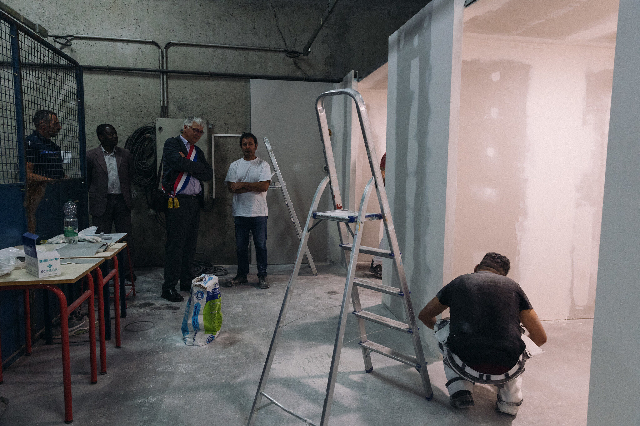 Si le petit groupe a débarqué ce matin sans prévenir, la visite n’en reste pas moins guidée. En présence du directeur d’établissement, un officier de la MAS oriente vers les sections qui fonctionnent le mieux. Il y a tout d’abord les ateliers où une trentaine de détenus travaillent pour les entreprises Würth, Cartonnages d’Alsace ou Éco-idée. C’est ici qu’Ardon se forme à la peinture en bâtiment avec sept autres personnes. Un peu plus loin, une dizaine de prisonniers s’affairent à plier des cartons. Récemment, la maison d’arrêt a perdu les postes de Heineken. Le groupe brassicole a décidé de passer aux capsules métalliques pour fermer les bières Fischer. Dès lors plus besoin de détenus pour installer la fermeture mécanique propre aux bouteilles Fischer.
