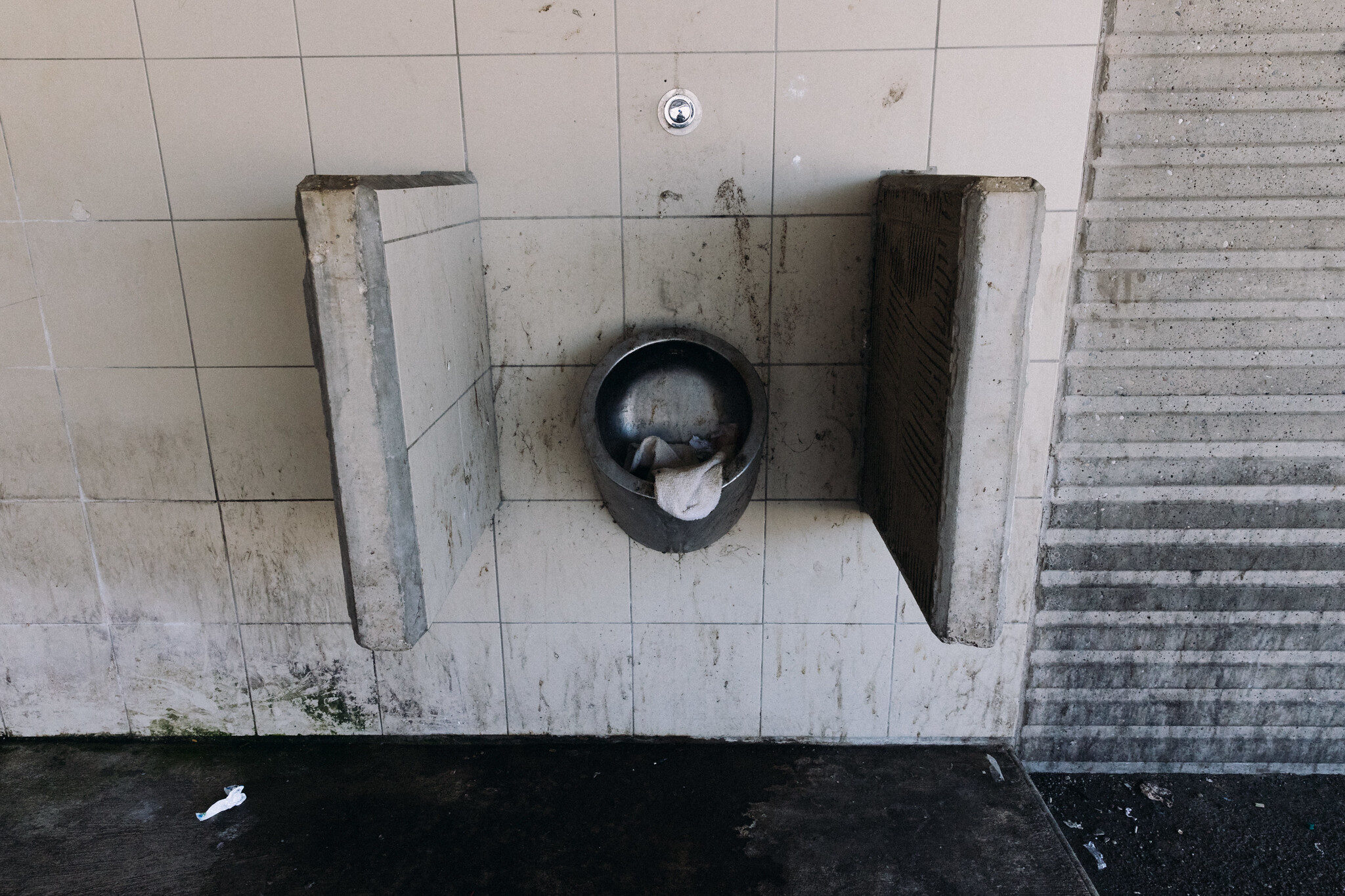 Mais dans le quartier pour mineur (seul endroit où les cellules sont individuelles et équipées d’une douche), une cellule vide présente des sanitaires dans un état de délabrement avancé. Le robinet et son tuyau peuvent aisément être soulevés. Dans un couloir, certaines parties du mur sont décrépites, d’autres ont une couleur de moisi.