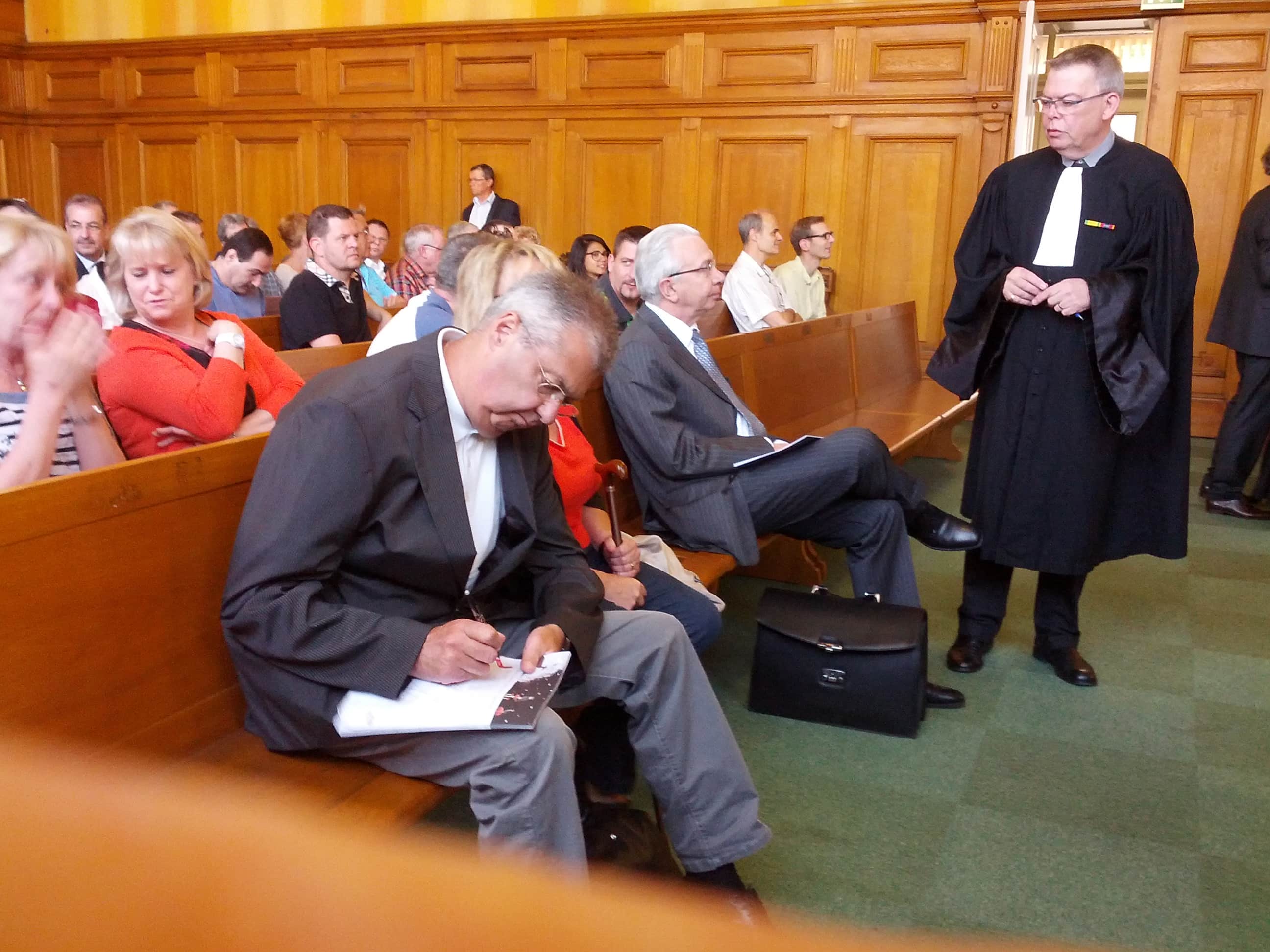Yves Zehr vient d’entrer dans le tribunal, accompagné de son épouse, et de leurs conseils Me Bernard Alexandre et Me Arnaud Friederich.