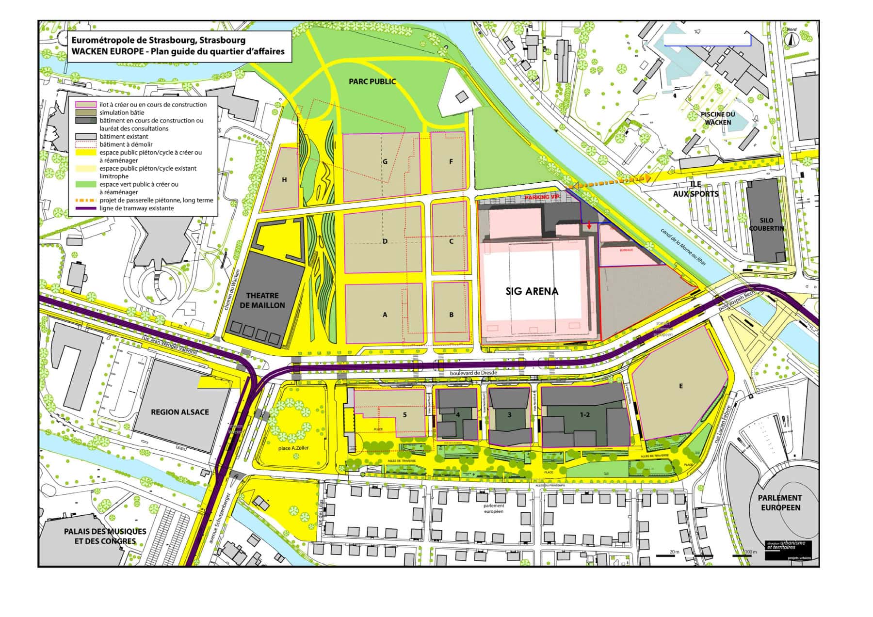 Dans les premières tours, les plus proches du Parlement européen dont la construction a débuté, Adidas et le Crédit mutuel ont prévu de s’implanter. D’autres tours de bureaux et de logements sont prévues au centre du quartier, ainsi qu’un hôtel à la place de l’actuel théâtre du Maillon, déplacé de l’autre côté de la place Adrien Zeller.