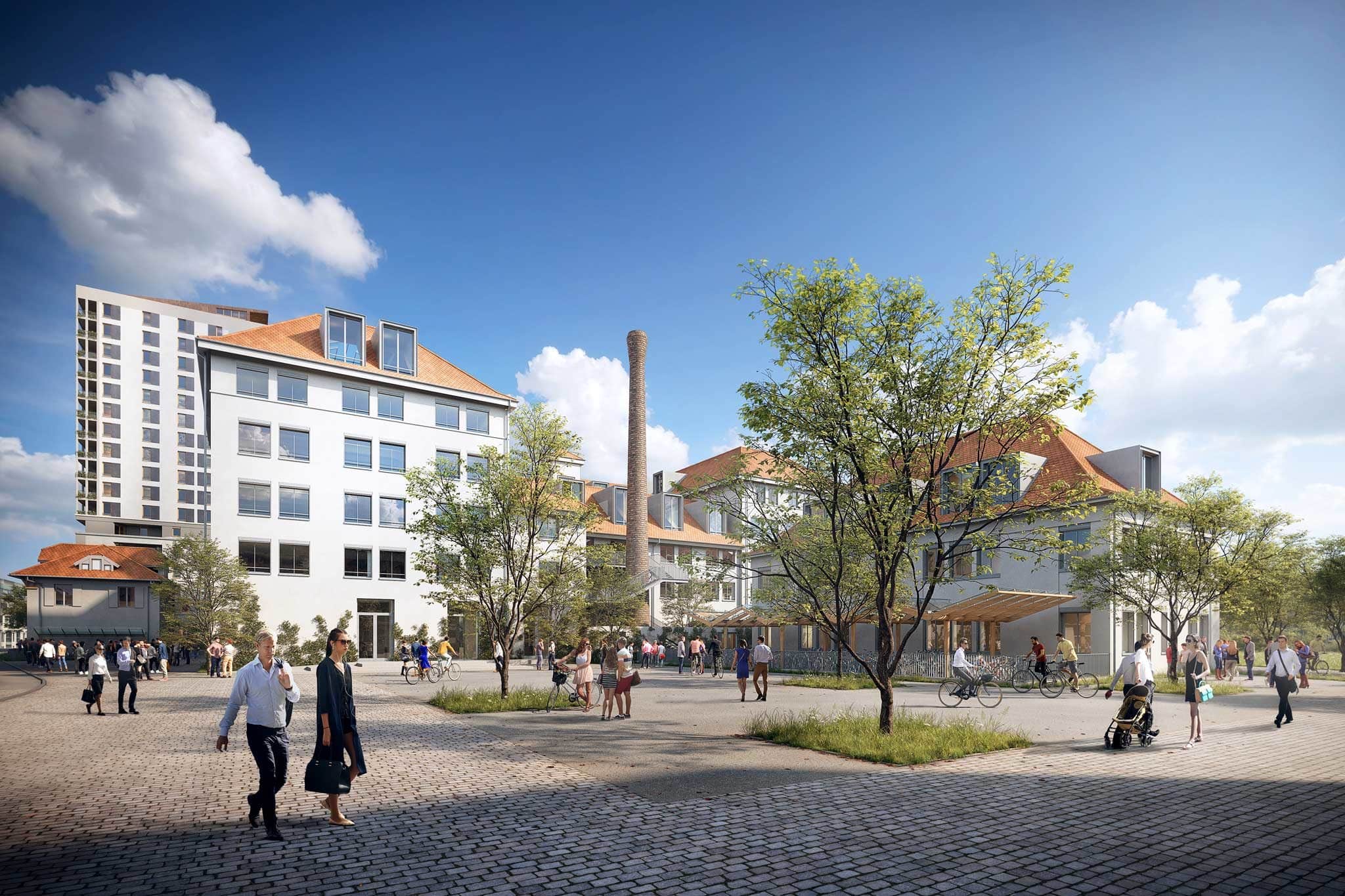 À l’est de cet immeuble, d’autres ensembles doivent compléter cet zone dite de « La nouvelle administration » et seront dévoilés plus tard. Tous les logements sont placés dans la partie sud de la « bulle » de la Coop pour les éloigner tant que possible des nuisances des industries de l’autre côté de la route, voire des risques d’accident.