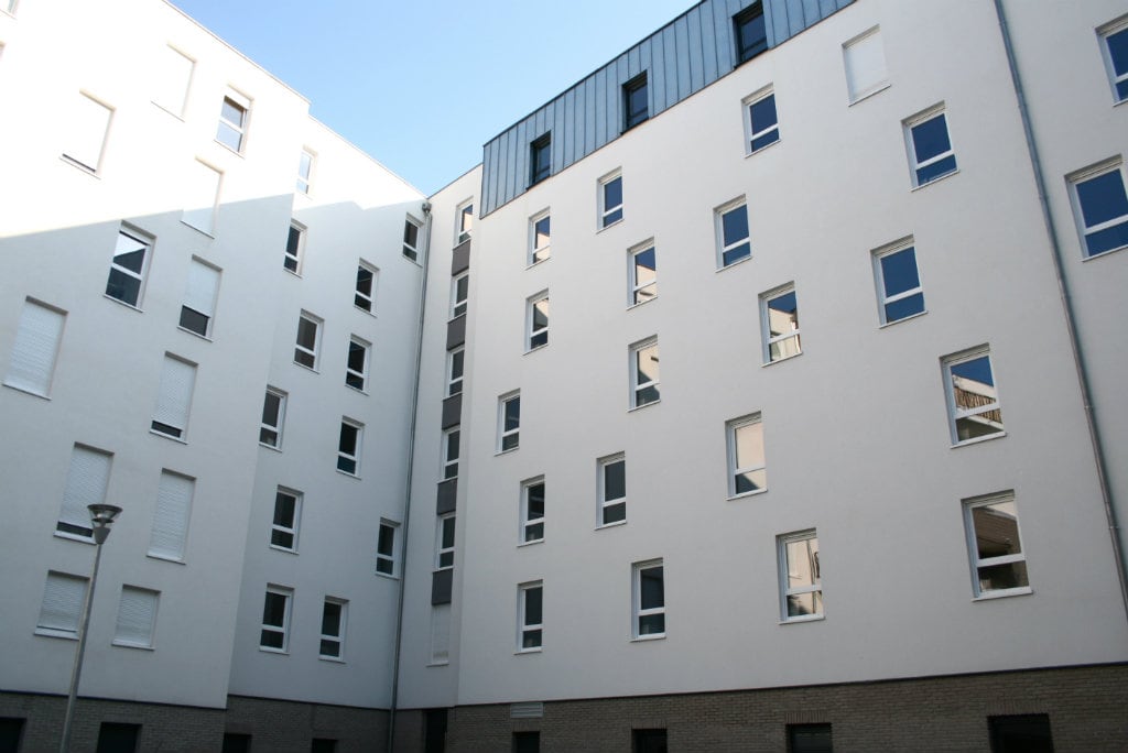 Eté 2013, 9 heures, à l’angle de la rue de Bucarest et de l’avenue du Rhin, en face des terrains de foot. Une famille sort de la résidence Le Bruckhof, un immeuble géré par le bailleur social Habitat de l’Ill, habité depuis quelques mois. Les rires résonnent dans la cage d’escalier où s’alignent une dizaine de boîtes aux lettres.