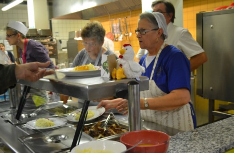 Les locaux de ce restaurant social ont été transférés là en 2004. Depuis, Suzanne voit les gens défiler. Elle est chef de service. Bénéficiaires et bénévoles l’appellent « Mamie ». A 72 ans, la retraitée se charge des tâches administratives et veille au grain à ce que tout se passe correctement. « Personne n’ose lui désobéir », s’amuse un bénéficiaire. Pour elle, le fait que les associations soient regroupées dans le quartier n’est pas un problème :