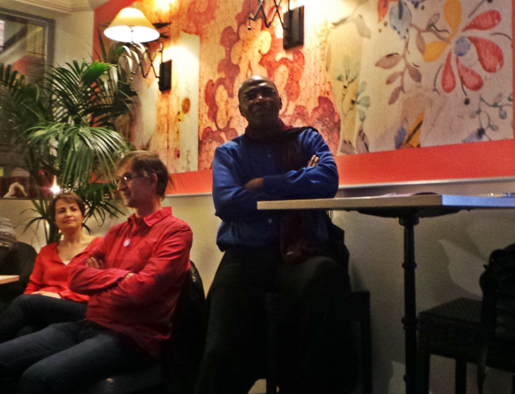 À chaque dîner des optimistes un intervenant se déplace. Ce soir, c’est Gaston-Paul Effa, auteur lorrain d’origine camerounaise. Cet ami de Ghislain est venu gracieusement, son intervention dure une vingtaine de minutes. Elle traite de l’animisme, c’est-à-dire l’harmonie entre l’homme et la nature.