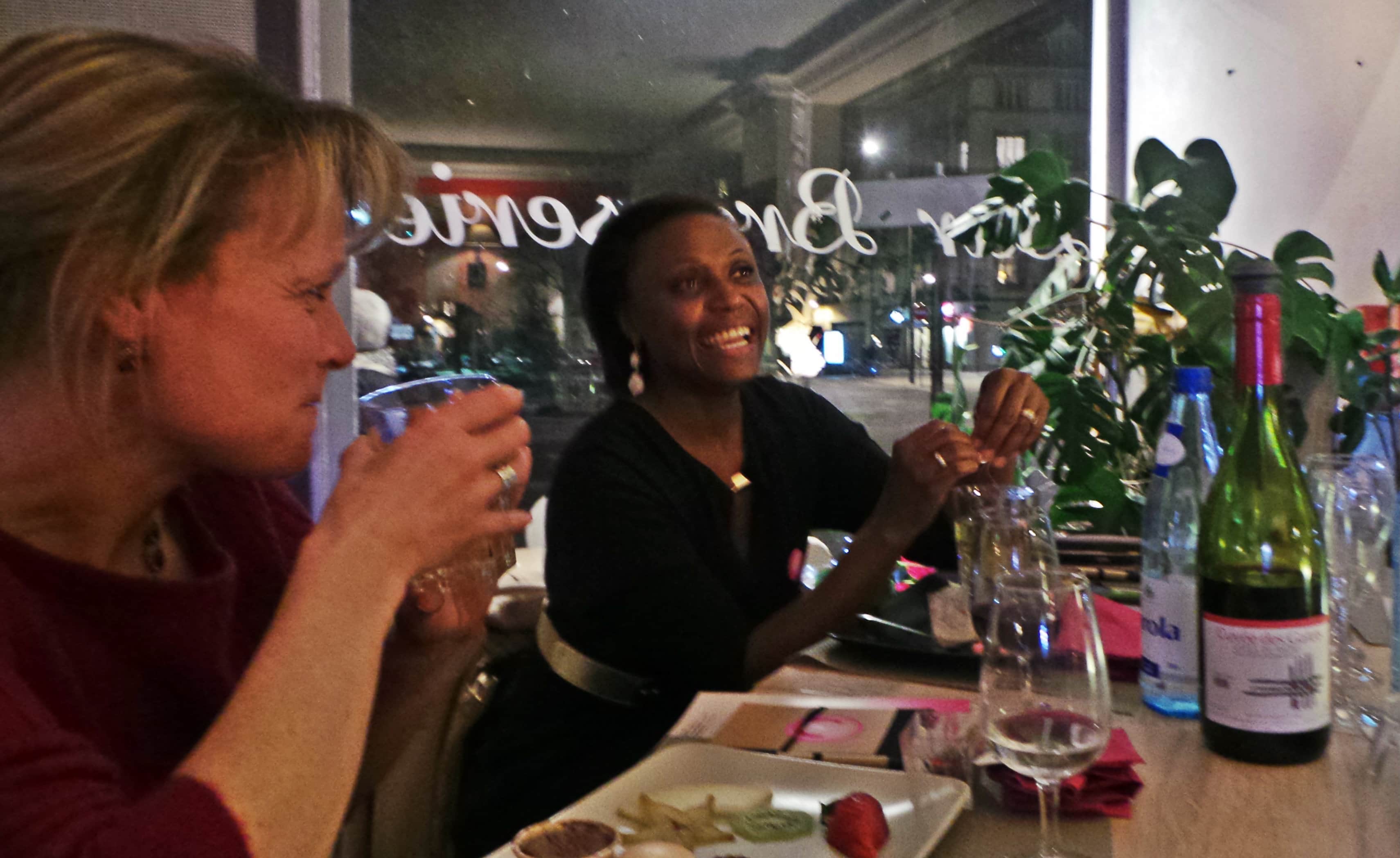 Pour mieux se connaître, elle nous propose de raconter nos trois « kiffs » de la journée, autrement dit nos moments de plaisir. Au début, l’inspiration manque, mais en fin de tour de table, chacun a plutôt quatre ou cinq kiffs à raconter. Le dernier étant ce dîner pour lequel beaucoup « n’avaient pas trop envie d’aller au début ». Les quelques verres de vin aidant, la bonne humeur et les énergies positives sont communicatives.