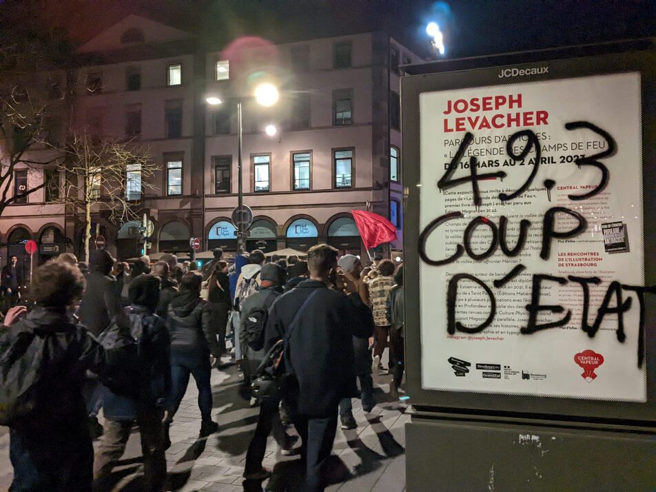 Les organisations de jeunesse (Jeunes écologistes d’Alsace, Jeunes insoumis.es de Strasbourg, Jeunes communistes du Bas-Rhin, Alternative étudiante de Strasbourg et La voix lycéenne 67) appellent aussi à « intensifier la mobilisation » en participant à cette manifestation. Le collectif « On crèvera pas au boulot », qui a mené deux blocages contre la réforme des retraites et appelé à manifester dès l’annonce du recours à l’article 49 alinéa 3 de la Constitution, a aussi relayé cet appel à manifester.