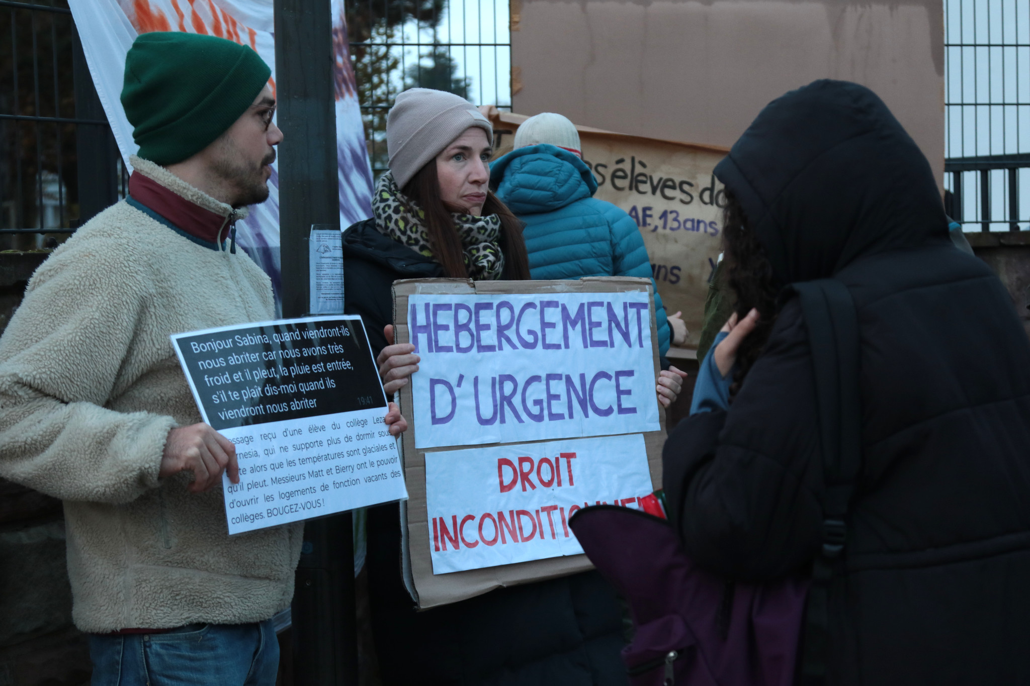 Depuis vendredi 8 novembre, des personnels éducatifs du collège Lezay Marnésia, dans le quartier de la Meinau, occupent leur établissement. Ils ont mis à l’abri certains de leurs élèves qui dormaient dehors depuis la rentrée et leur ont permis de passer quelques nuits dans le CDI. Les enseignants demandent à la Collectivité européenne d’Alsace (CeA) de loger leurs familles dans des deux logements de fonction vacants du collège.