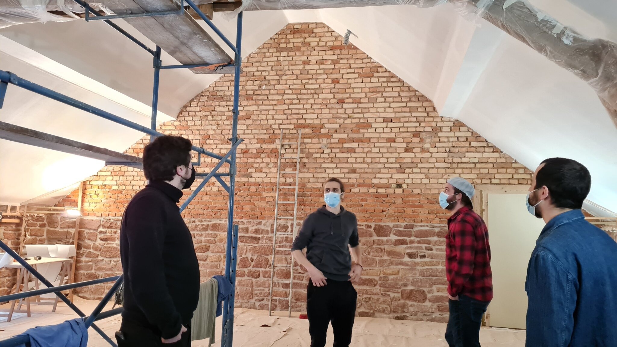 À l’intérieur, les quatre musiciens font visiter cette grande pièce de 70 m², haute sous plafond, qui accueillera bientôt leur studio d’enregistrement. « On a gratté les joints entre toutes les pierres pour les faire ressortir le plus possible », détaille Clément Adolff en passant sa main sur l’un des murs en grès rose. « Ça favorise la circulation du son. Rien que cette étape nous a pris plusieurs mois. C’était un travail de titan », sourit-il. À l’image du chantier dans lequel le petit groupe s’est lancé il y a plusieurs années.