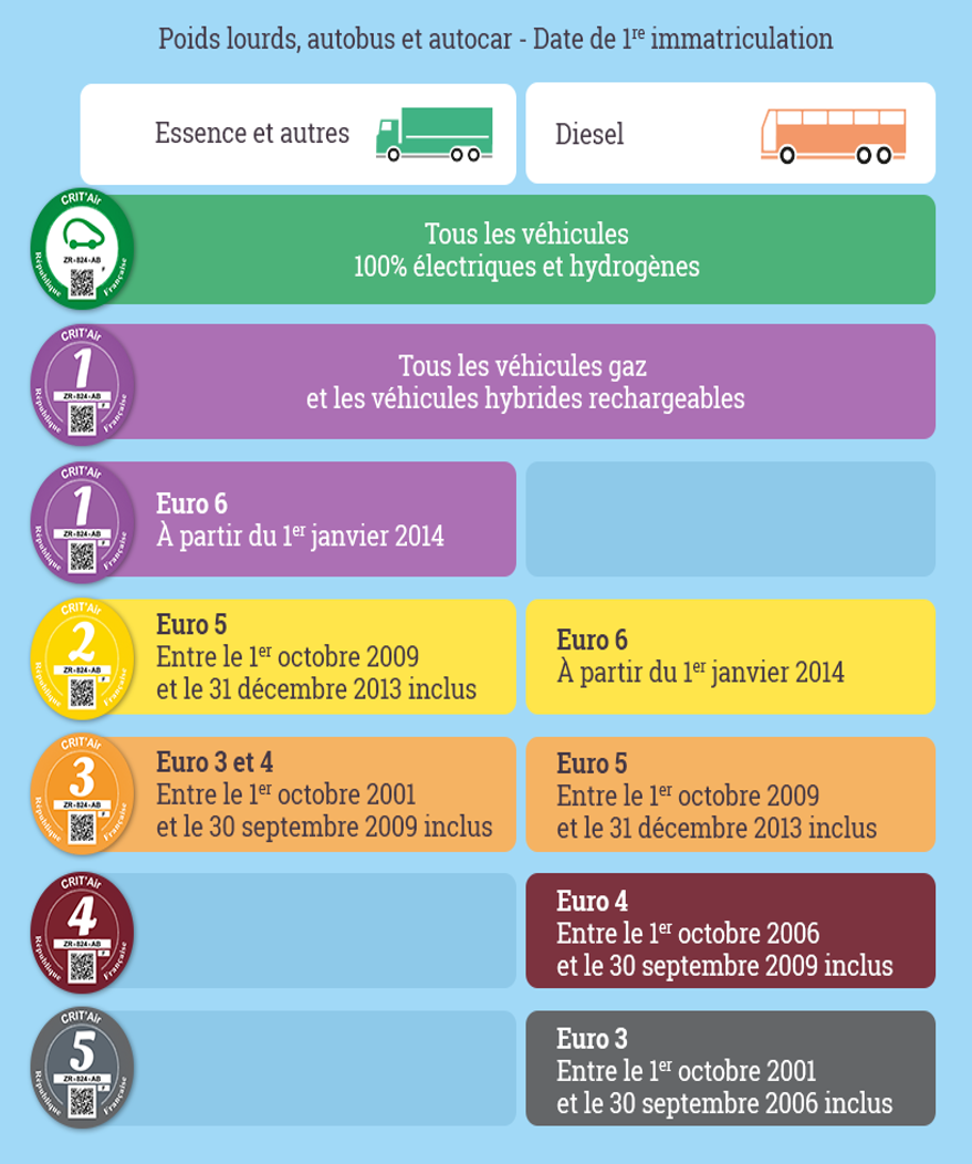 - Le 1er septembre 2018, les poids lourds sans vignette ou avec une vignette Crit’Air 5 (environ 10% des véhicules au niveau national) seront interdits.