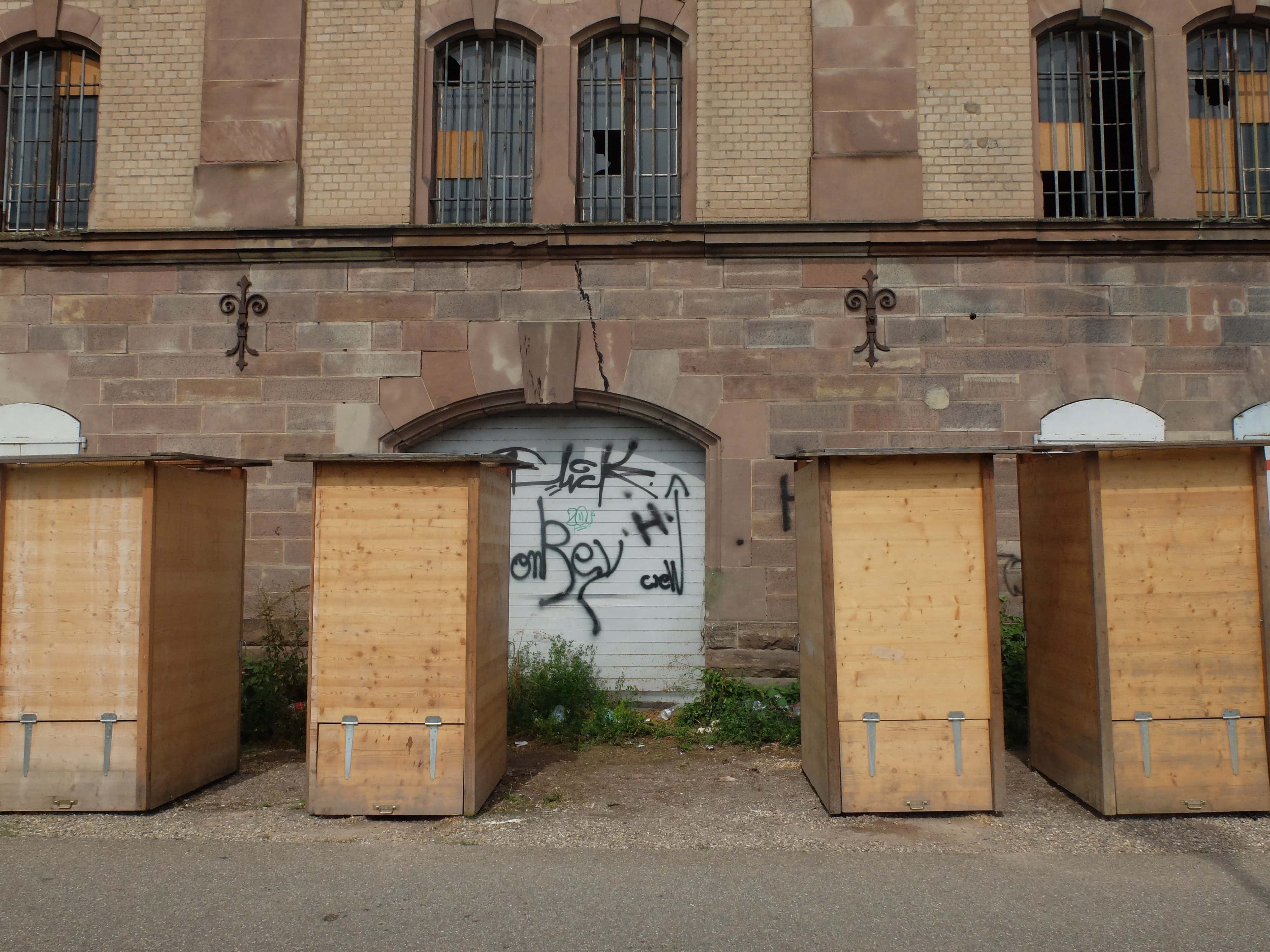 Ce camp de fortune et d’infortune est à un kilomètre du centre-ville de Strasbourg, mais en est en même temps totalement séparé par les voies de chemin de fer. Situé derrière la gare, côté nord, il se trouve le long de la route, isolé entre une colline qui recouvre les anciennes fortifications et les grillages à barbelés de la gare.