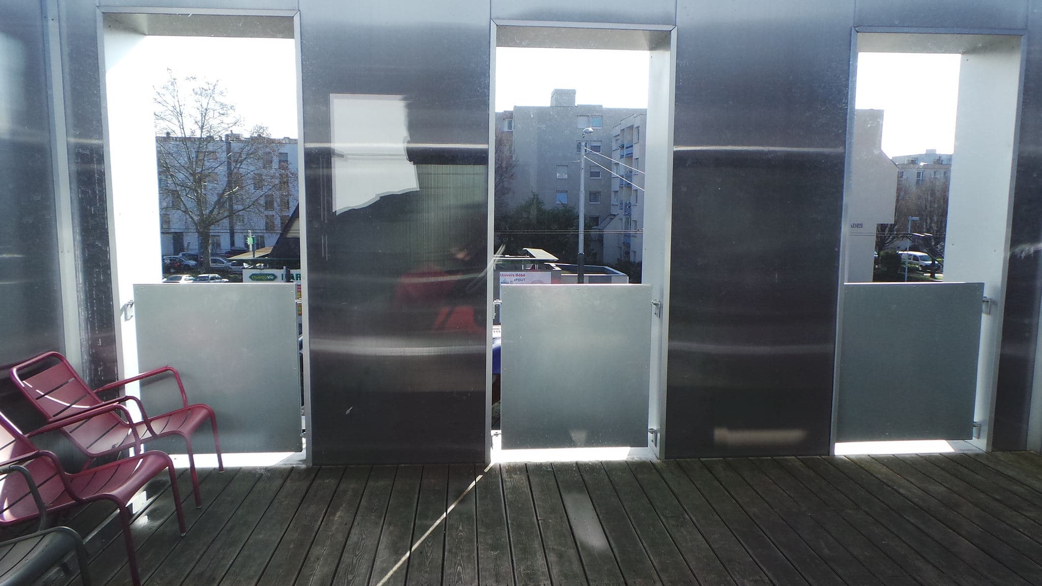 Le bâtiment, construit en 2011 et financé par l’Eurométropole, l’Union européenne, l’agence nationale de la rénovation urbaine (ANRU), la Région Alsace et le Bas-Rhin pour 3,95 millions d’euros est aux normes BBC (bâtiment basse consommation). Mais ce n’est pourtant pas le pas le bureau idéal. Les stores s’activent quand il y a de la lumière, on ne peut pas les régler manuellement. L’intérieur en bois n’est pas parfaitement isolé et « l’été, c’est un sauna », glisse Laura Fort. Jusqu’à 38°C en 2015 !