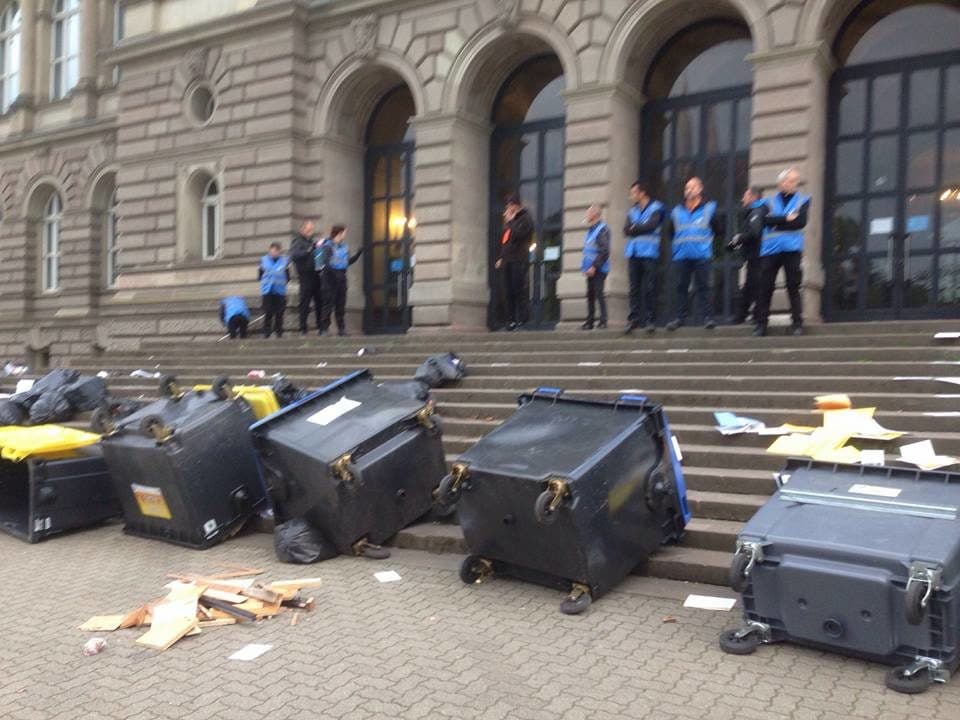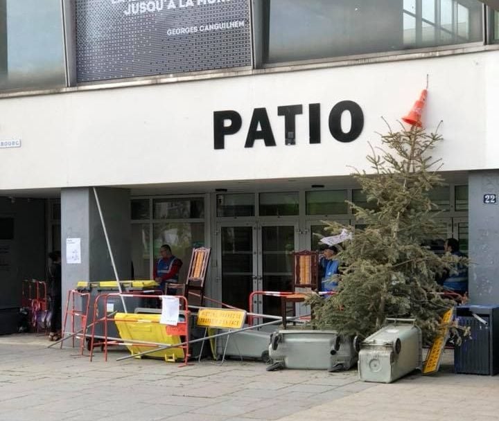 Le Patio et le bâtiment de la faculté de Math et d’informatique sur le campus principal de l’Université de Strasbourg sont bloqués depuis ce lundi matin, selon des constatations de Rue89 Strasbourg. Les accès au Palais universitaire ont été brièvement bloqués mais, selon « l’AG des étudiants en lutte, » les vigiles de l’Université ont retiré les containers-poubelles qui avaient été placés devant les portes.