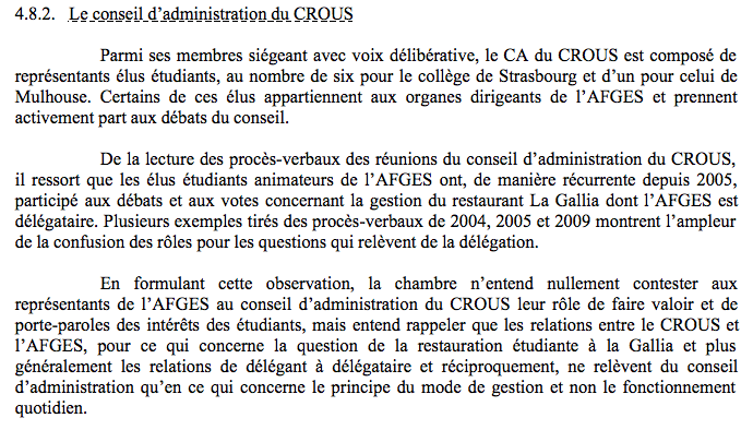 Ce que préconise la Chambre : un « retrait » des représentants de l’Afges lors des débats et des votes en CA relatif à la gestion de la restauration.