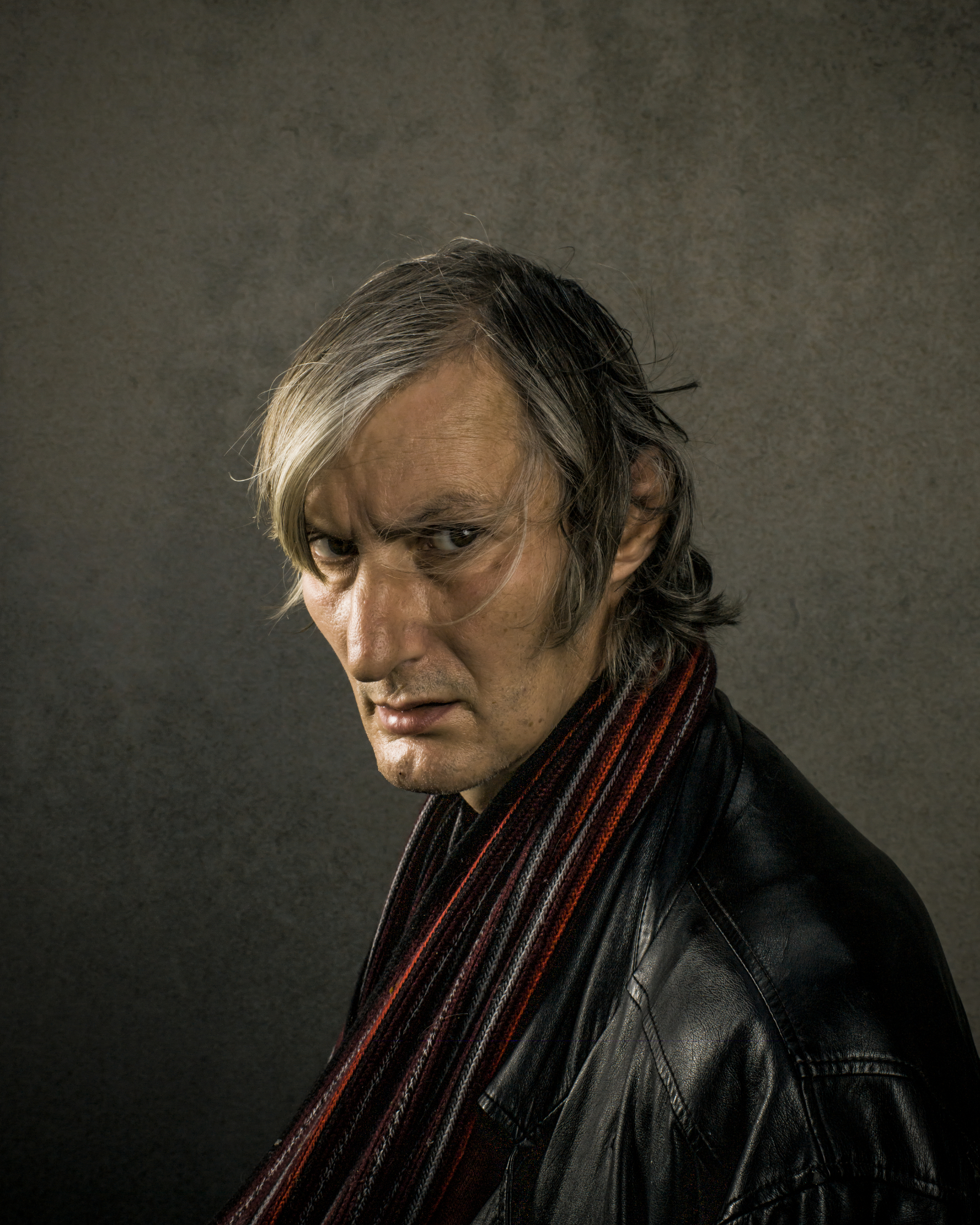 Puis l’exposition s’ouvre sur une immense série de portraits. Les premiers, en grand format, montrent des visages, dont certains s’effacent presque sous une sorte de filtre, ici terreux, là d’acier. Un peu plus loin, une succession de plus petites photographies au fond noir. Une jeune femme au visage fin, un élégant collier autour du cou, fixe le spectateur dans les yeux. A côté, un homme tatoué regarde en biais, les cheveux grisonnants, l’air désabusé. Plus loin, une dame porte chapeau de paille. Ses yeux comme embués se perdent dans le vide. Autant de visages de cet autre monde, souvent fantasmé, de l’hôpital psychiatrique, « l’asile ». Certains regards peuvent sembler énigmatiques, étranges, d’autres paraissent plus familiers. En passant face à chacun de ces visages, on finit par se rendre compte que nous ne sommes jamais loin d’être « l’autre ».