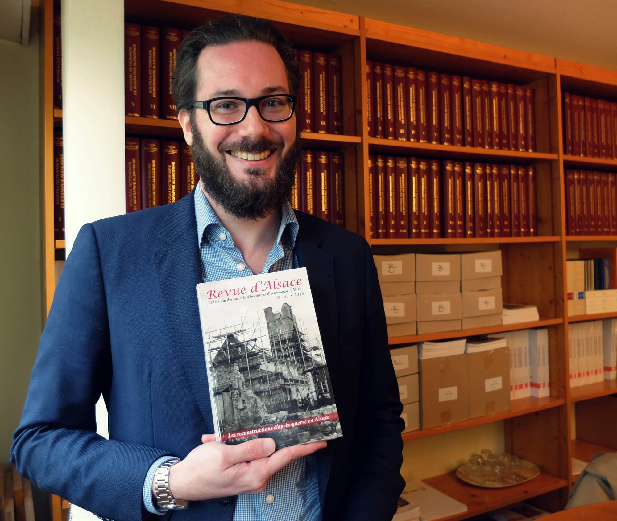 Nicolas Lefort : « On n’a pas de problème de renouvellement générationnel ! Les auteurs d’articles sont des chercheurs amateurs et professionnels, jeunes et expérimentés, hommes et femmes, français mais aussi étrangers. Il y a bien sûr des auteurs réguliers de la Revue d’Alsace, mais aussi des nouveaux chaque année. En 2016, on trouve notamment des articles de jeunes auteurs titulaires d’un master (Cécile Rivière, Jokine Wehbé), de doctorants (Clément Wisniewski, Laura Kern, Simon Liening, Pierre Krieger) et de jeunes docteurs dont c’était parfois la première publication.