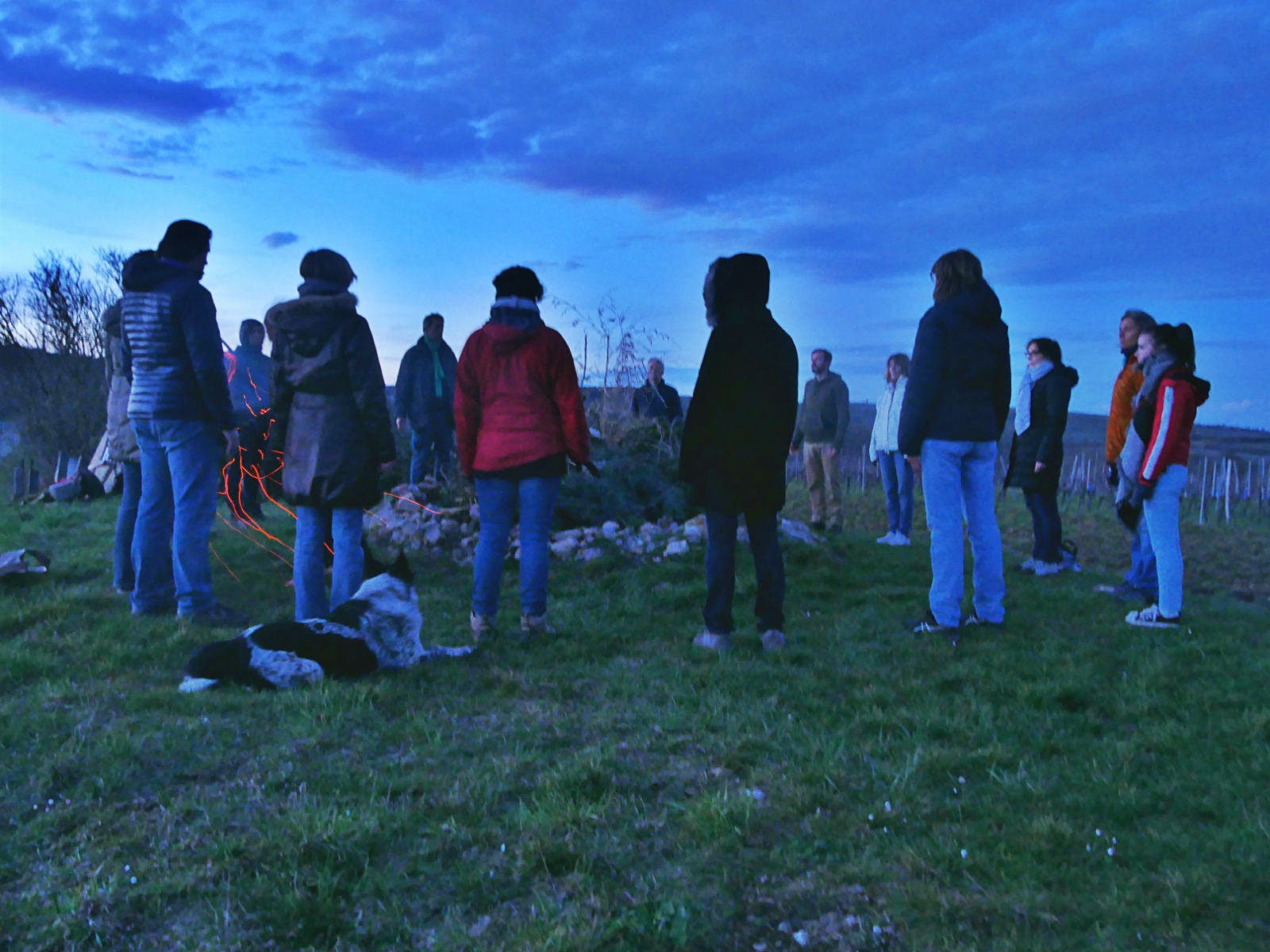 « Il faut remercier Merlin de nous accueillir. » Merlin, c’est le premier arbre imposant à la sortie du village de Rosheim, près d’Obernai. La chamane Joëlle avait donné rendez-vous à 19 heures au bout de la rue du général de Gaulle. Une vingtaine de personnes ont répondu à l’appel de la « guérisseuse et libératrice d’âmes ». Ils ont d’abord payé 10 euros chacun pour la cérémonie nocturne autour du « feu sacré ». Puis le groupe, vêtu de doudounes et de chaussures de marche, s’est dirigé vers la sortie du village. Vers 19h15, « fin du blabla », demande la guide. Chaque participant doit être « en conscience » pour participer à la cérémonie.