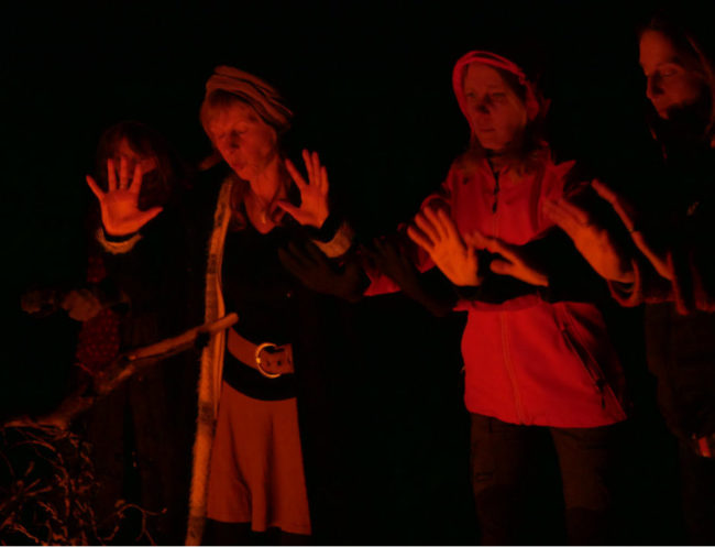 Vers 19h30, les membres du groupe doivent passer entre deux arbres. Mais cette fois, la chamane prévient : il s’agit d’un véritable « portail ». Nul ne peut le franchir sans être « en conscience ». Joëlle ne précise pas en quoi consiste cet état d’esprit. Elle se contente d’accompagner une personne après l’autre en exécutant de grands gestes. La « guérisseuse d’âmes » estime que l’avant-dernière participante ne satisfait pas aux conditions d’entrée dans les lieux. Devant le groupe, elle doit repasser sous l’œil attentif de la meneuse.