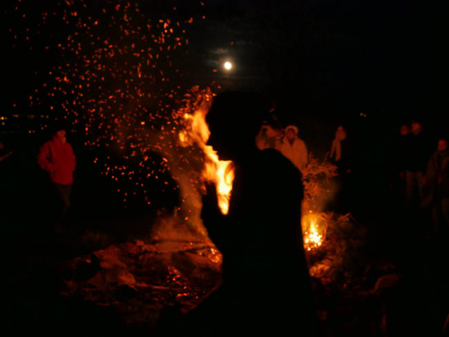 Vers 20h, le groupe arrive sur le lieu du « feu sacré ». La chamane « nettoie » les participants. Un bouquet de sauge à la main, elle caresse avec les plantes le haut du corps de chacun d’entre eux. Puis la guérisseuse entame un long monologue :