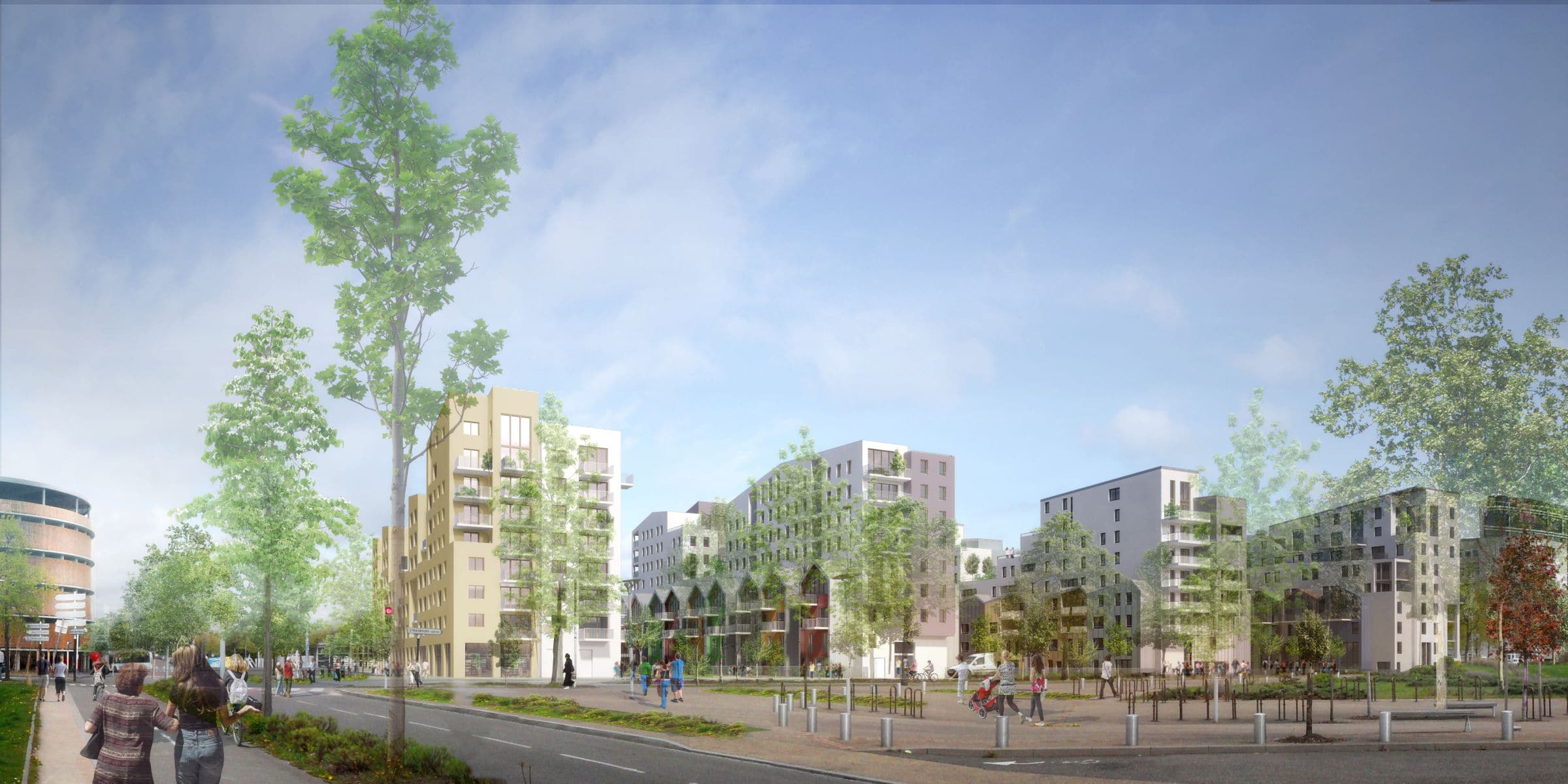 Ils s’érigeront sur le terrain de l’ancien parking municipal de la Rotonde, libéré par la construction du parc de stationnement à étages du même nom, juste en face. Le projet est sur les rails depuis 2009. Dès 2011, la municipalité avait ficelé avec un promoteur un projet d’urbanisation du terrain. Jugé trop dense, il n’avait pas résisté à la concertation publique. En 2012, l’Eurométropole vend finalement l’emplacement au promoteur Demathieu & Bard, chargé de l’aménager et de coordonner les différentes facettes de la construction après avoir vendu le terrain par lots à d’autres promoteurs. Objectifs fixés : densifier ce quartier inhabité, attirer les familles et améliorer la mixité sociale.