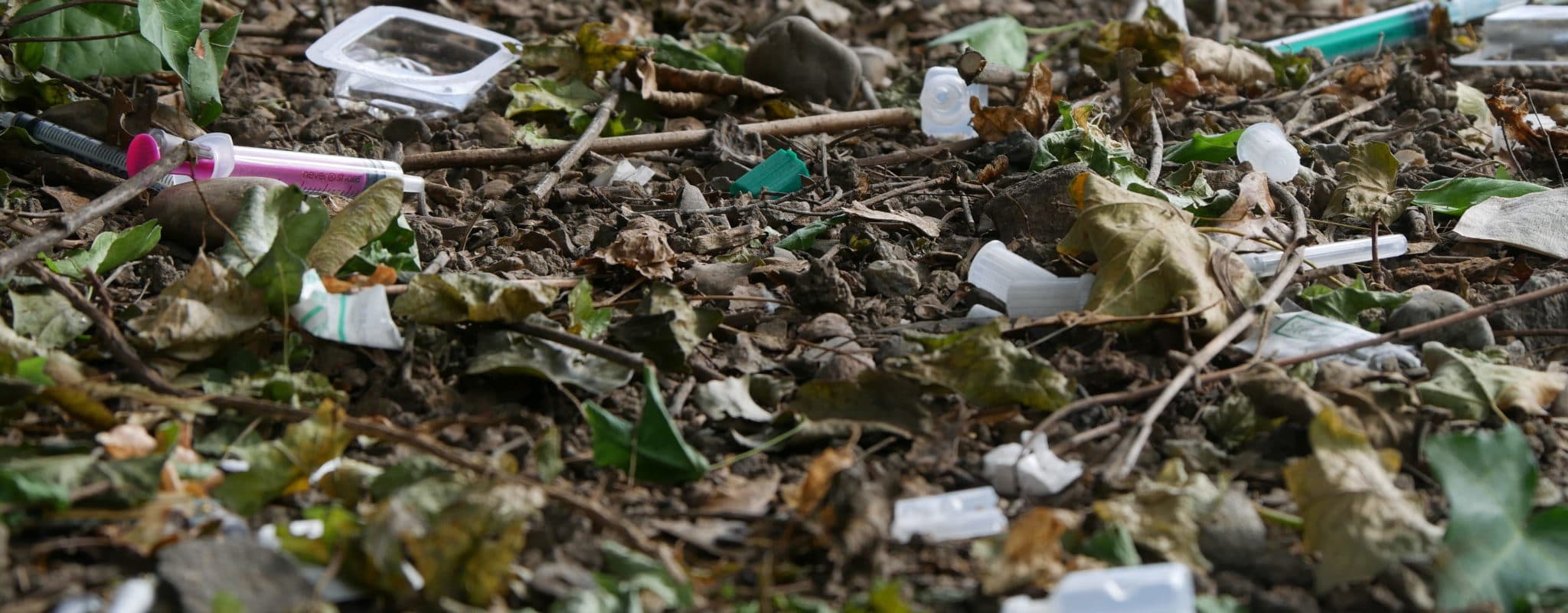 Seringue utilisée par les usagers d’héroïne ou de cocaïne. Photo prise à l’arrière de l’arrêt de tram Elsau, côté jardins partagés, le 29 juillet 2019 Photo : Guillaume Krempp / Rue89 Strasbourg