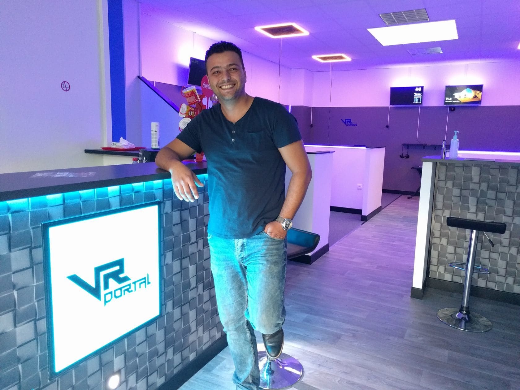 Ali est ingénieur, il a installé les ordinateurs et le réseau. Hakan est électricien, c’est à lui que la salle doit son système de câbles rétractables. Ils ont tous les deux « un gros passif de gamer » mais Hakan a aussi une passion pour l’éclairage LED et il s’est chargé d’en installer partout, ce qui donne à l’endroit un petit côté « K-2000« , un brin kitsch mais qui peut plaire aux « gamers », la cible de VR Portal.