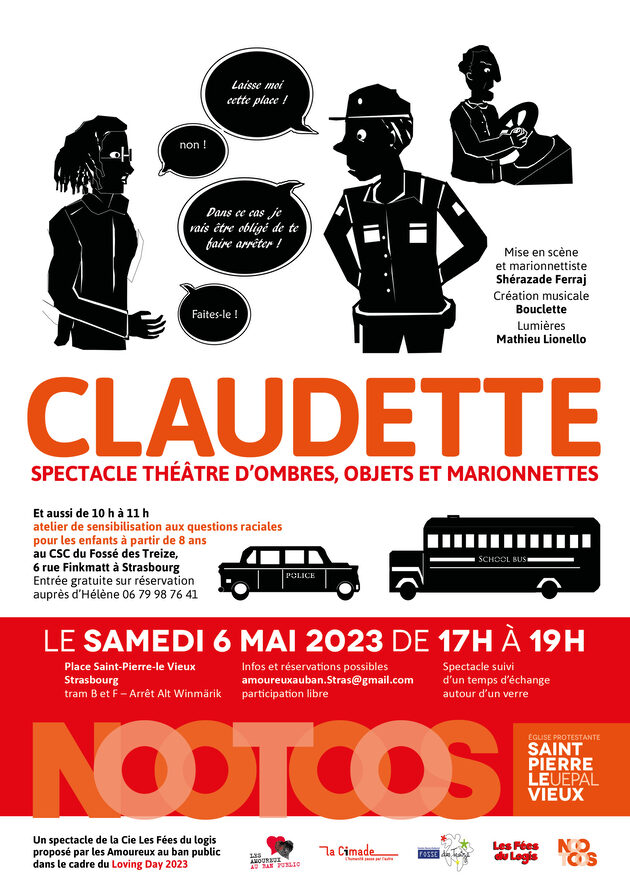 « C’est une histoire vraie, en noir et blanc, qui se déroule en 1955 dans l’Alabama. Une jeune fille de 15 ans dans l’Amérique ségrégationniste refuse de céder sa place à une jeune fille blanche du même âge, dans le bus qui la ramène dans sa maisonnette. Ah ! N’oublions pas de dire qu’elle est noire. » Ainsi débute la présentation du spectacle Claudette, mis en scène par la compagnie Les Fées du logis et organisé par l’antenne strasbourgeoise du collectif Amoureux au ban public. La représentation aura lieu dans une salle de l’église Saint-Pierre-le-Vieux samedi 6 mai à 17h.