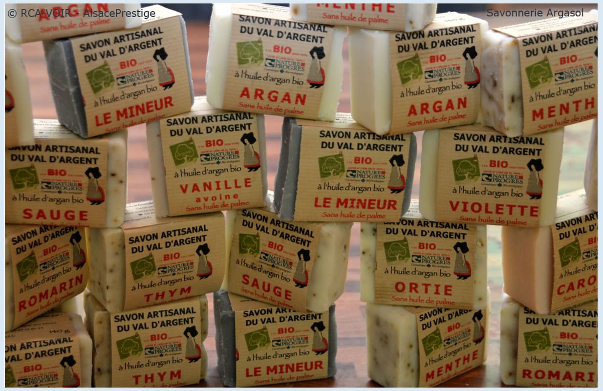 Mon premier choix se porte sur les savons en pain biologiques et 100% biodégradables de la savonnerie artisanale Argasol, située à Sainte-Marie-Aux-Mines.