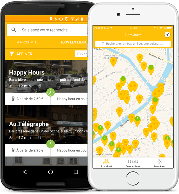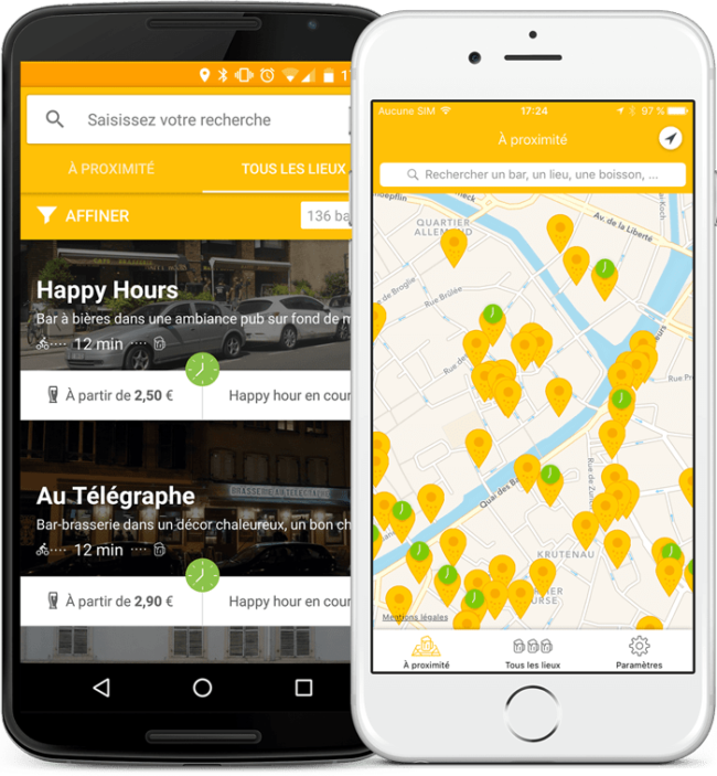 Schlouk Map est une application qui permet à ses utilisateurs de trouver facilement les bars environnants, grâce à une géolocalisation. Les prix, les réductions comme les « happy hours » et des avis sur les bars sont également référencés.