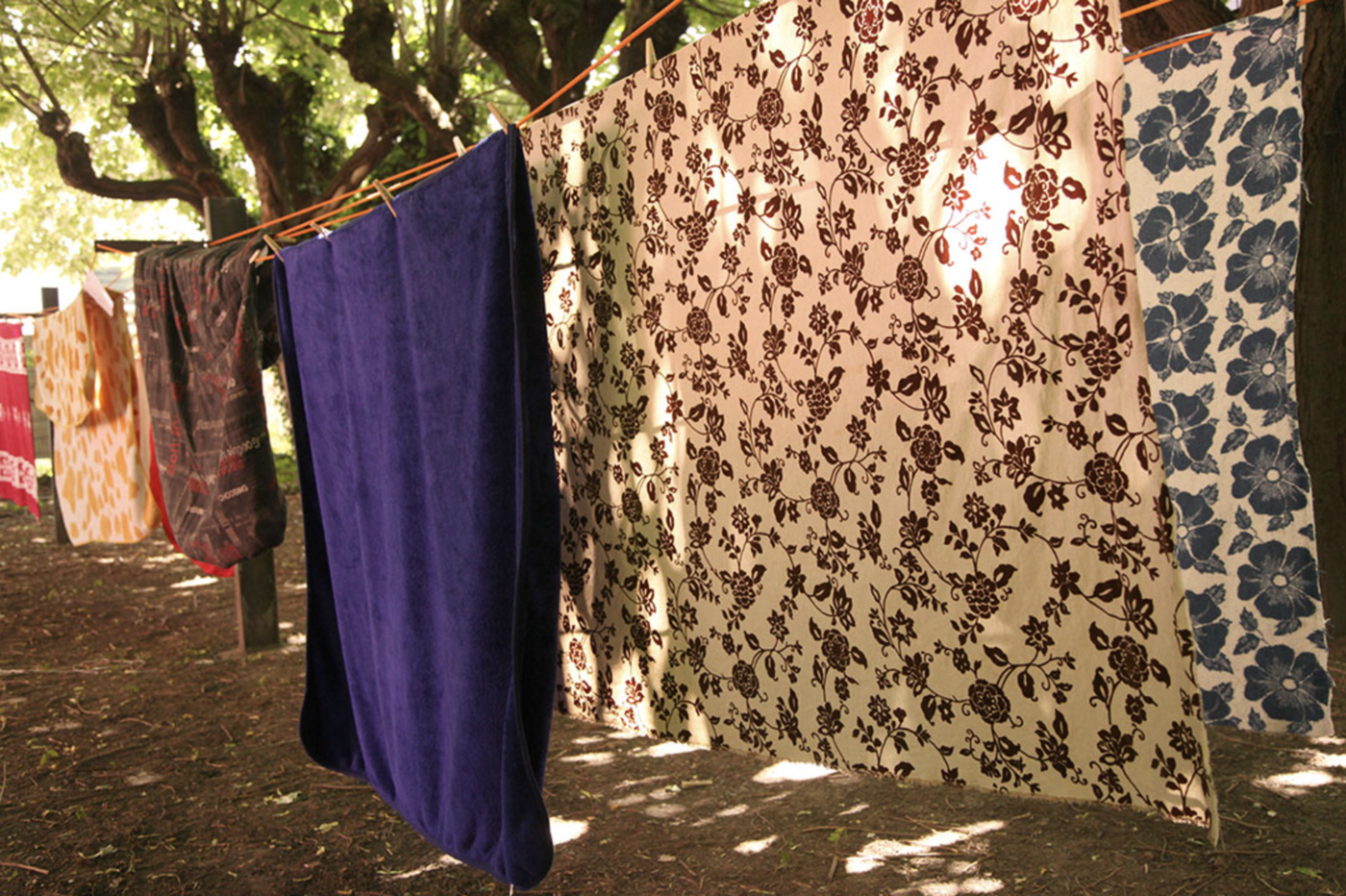 Rue du Hohwald dans le quartier Laiterie, L’Ososphère propose une exposition de tissus patrimoniaux. Qu’est-ce que des tissus patrimoniaux ? Ce sont des linges apportés par les résidents du quartier à la laverie de la Porte de Schirmeck, qui les a lavés gratuitement en échange de leur histoire entre septembre 2023 et juin 2024. De ces histoires, Eurgen Le Bras en a écrit des textes tandis que Ramona Poenaru et Gaël Chaillat ont conçu une exposition, intitulée Tendre Linge (Récolte).