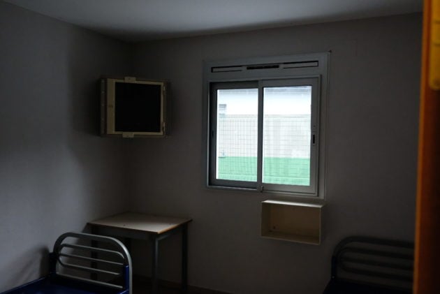 Dans la cour de la zone de détention, quatre hommes jouent au baby-foot à côté d’une salle de pause avec deux tables et deux jeux de société. Un peu plus loin, un fumeur allume sa cigarette sur un dispositif électrique accroché au grillage. « Ici, les détenus peuvent circuler librement, dans la cour et les bâtiments. Dans d’autres centres, ils sont enfermés dans leur chambre la nuit », décrit le chef d’établissement.