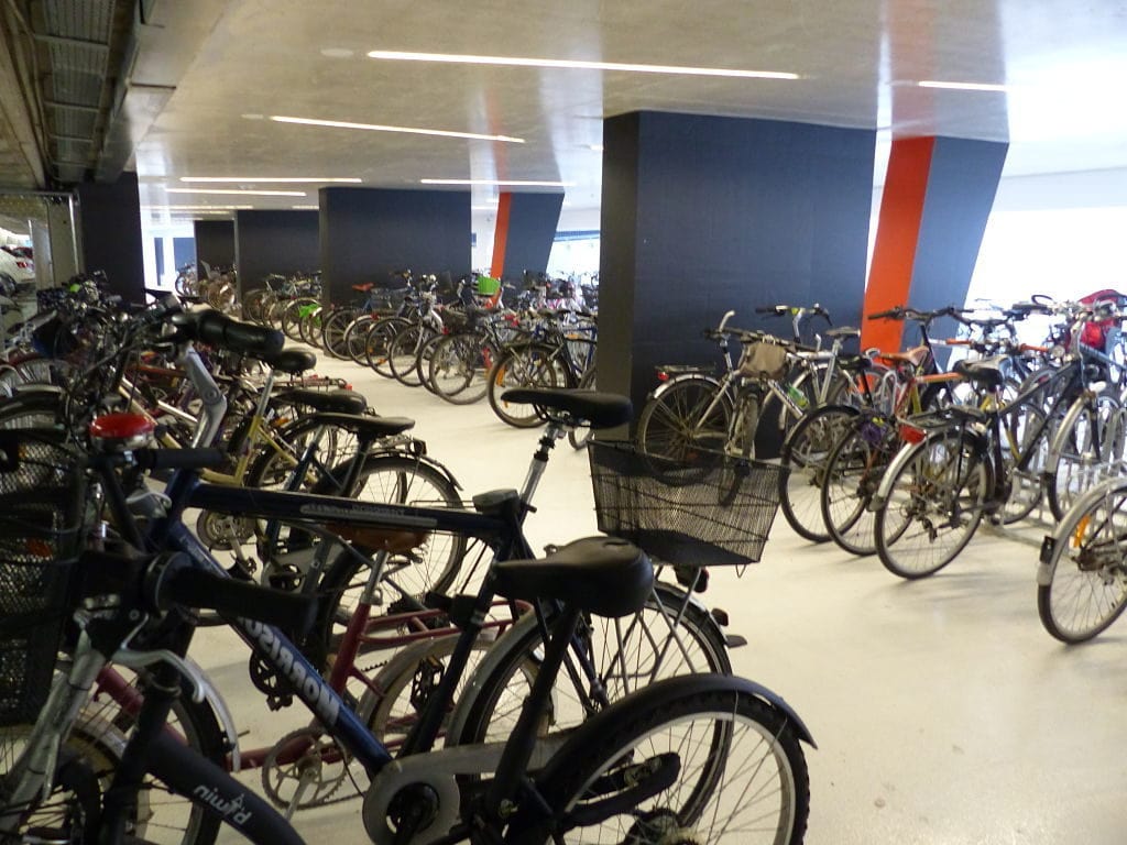 Une seule entrée pour un seul parking à vélo, souterrain et fermé. Auparavant, des arceaux étaient disséminés aux pieds de la dizaine de bâtiments. Mais désormais, ils ont été détruits et les emplacements à vélos ont été démontés. Pour les remplacer, un nouveau et unique parking à vélos a été construit. Il est situé au sud-ouest du site, proche de l’entrée maintenue.