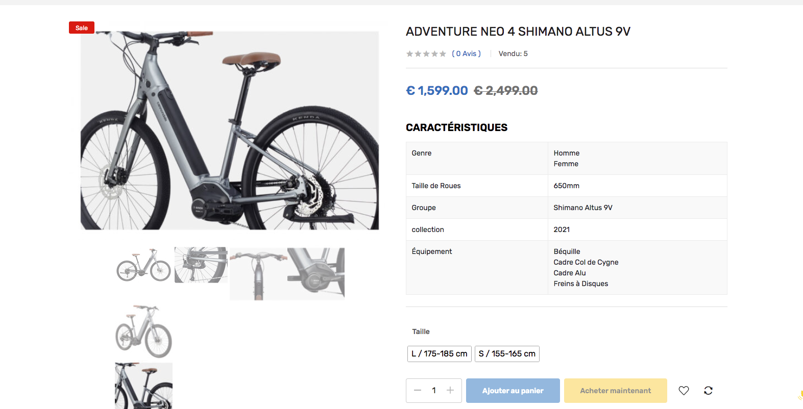 On y trouve des vélos électriques dernier cri, pour des prix allant de 410€ pour un VTT de base, à 5 500€ pour un vélo de ville électrique haut de gamme. Avec, à chaque fois, des prix défiant toute concurrence. Ainsi le vélo le plus cher, affiché à 5 500€ est un modèle qui coûte en réalité 8 000€. Une promo alléchante pour un magnifique vélo… Le problème de celui acheté sur mon-velofrance, c’est qu’il n’existe pas.